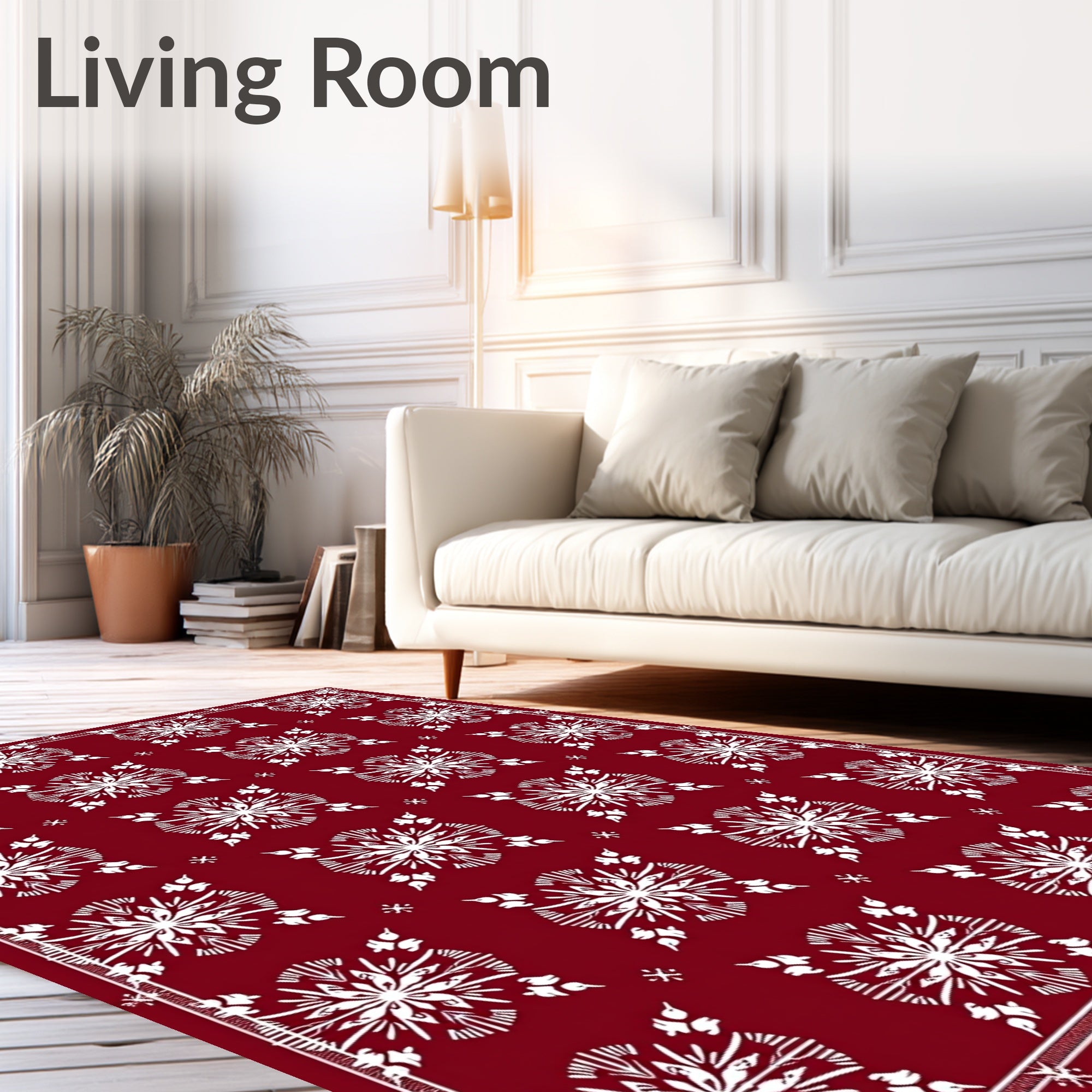 Ultra Soft Area Rug, Non Slip, Stain Resistant, Washable Area Rugs for Living Room, Bedroom, Elegant Yuletide Celebration Seasonal Accent(Red) Overview: