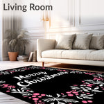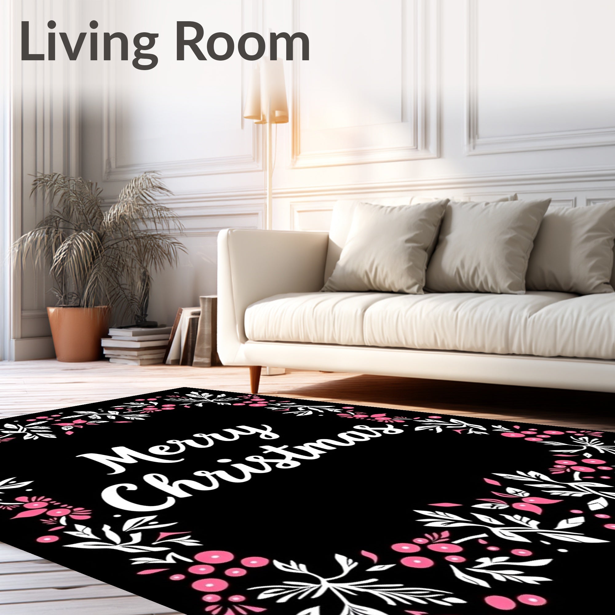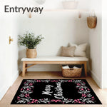 Ultra Soft Area Rug, Non Slip, Stain Resistant, Washable Area Rugs for Living Room, Bedroom, Elegant Yuletide Greeting Front Step Decoration Winter Wonderland(Black) Overview: