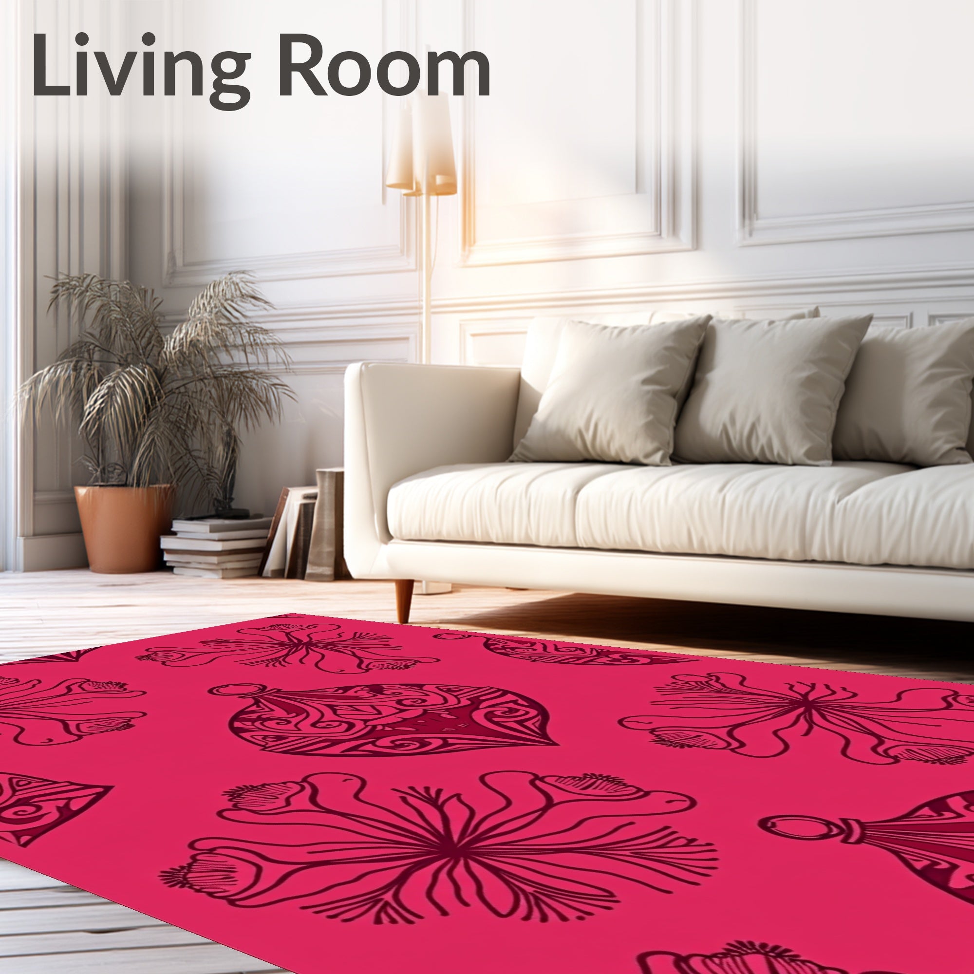 Flatwoven High Traffic Area Rug, Elegant Yuletide Ornament Swirl Accent Luxurious Comfort, Non Slip, Stain Resistant, Washable Area Rugs for Living Room, Bedroom (Pink) Overview: