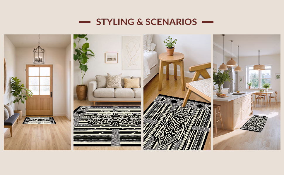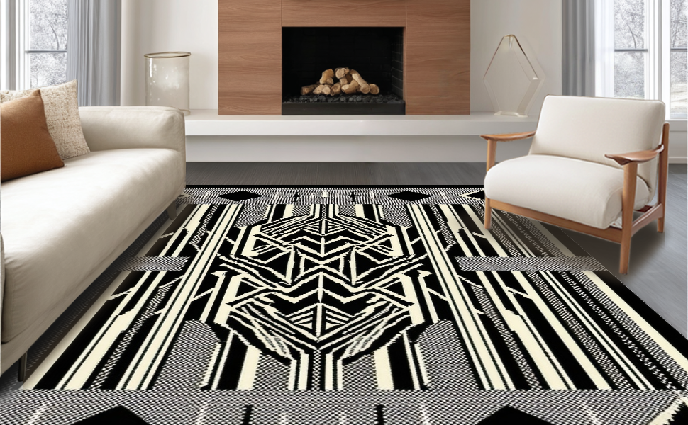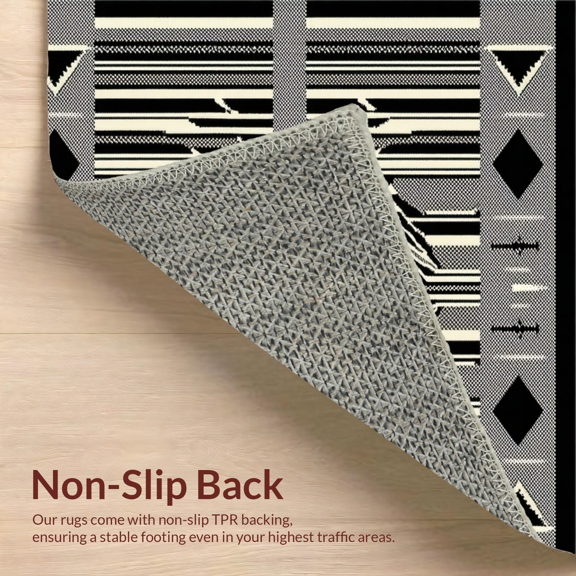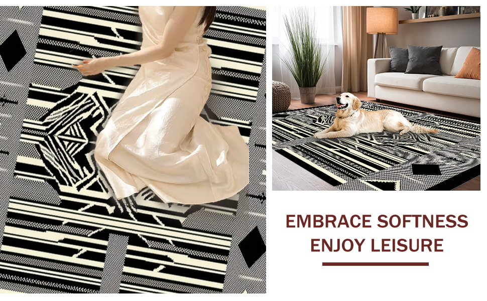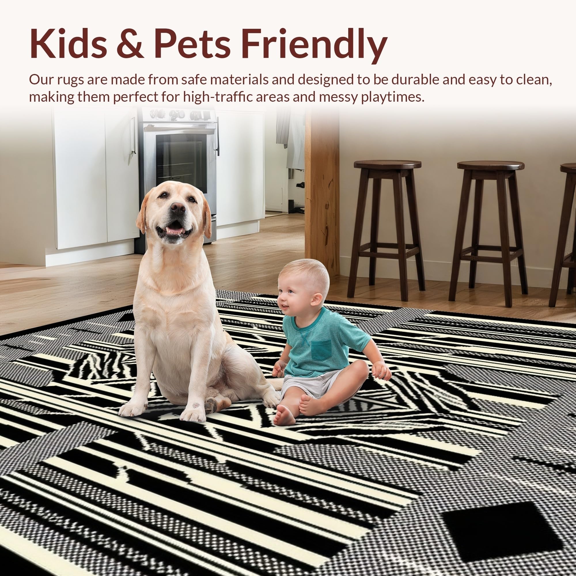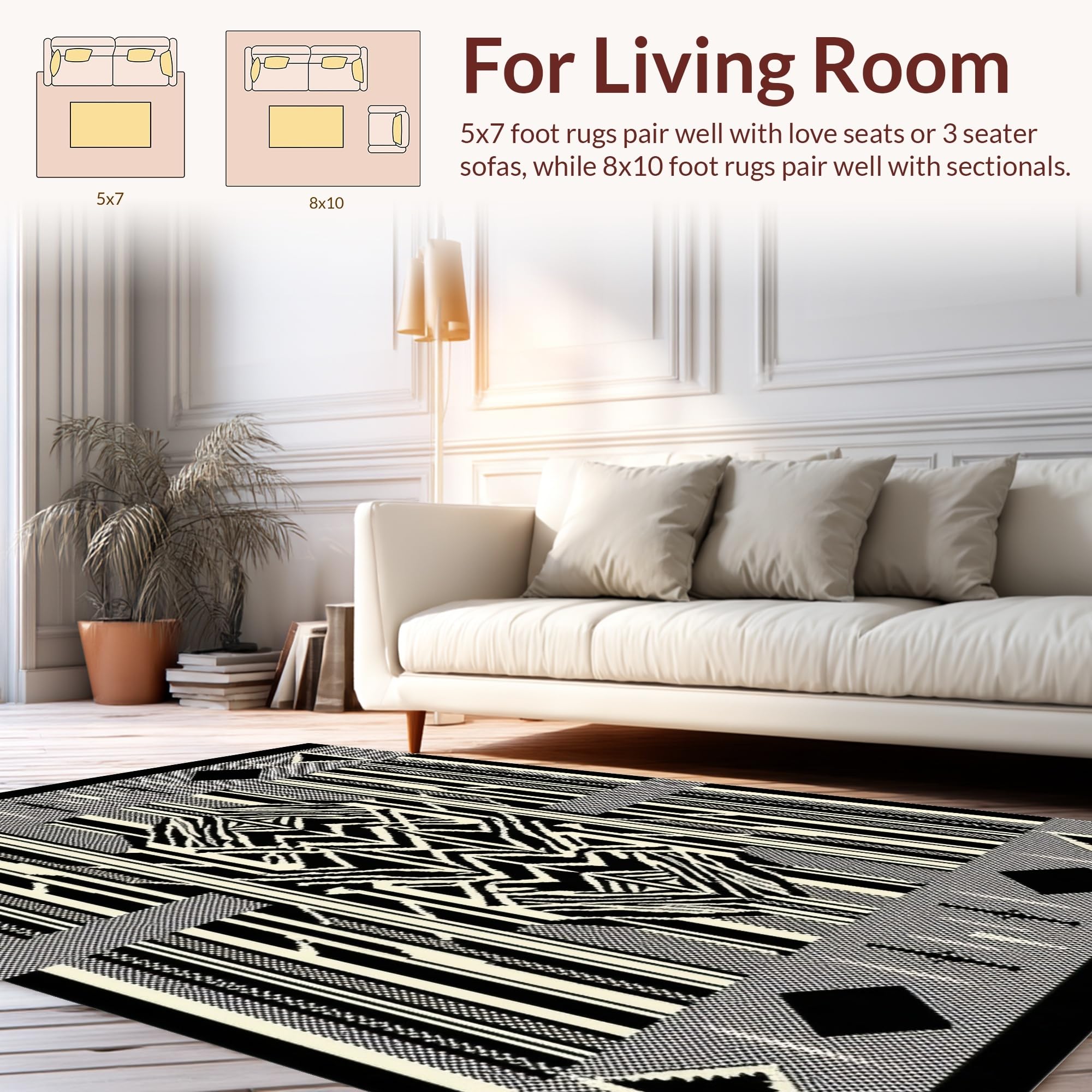 Ultra Soft Area Rug, Non Slip, Stain Resistant, Washable Area Rugs for Living Room, Bedroom, Elegant Zebra Abstract Aesthetic(Black) Overview: