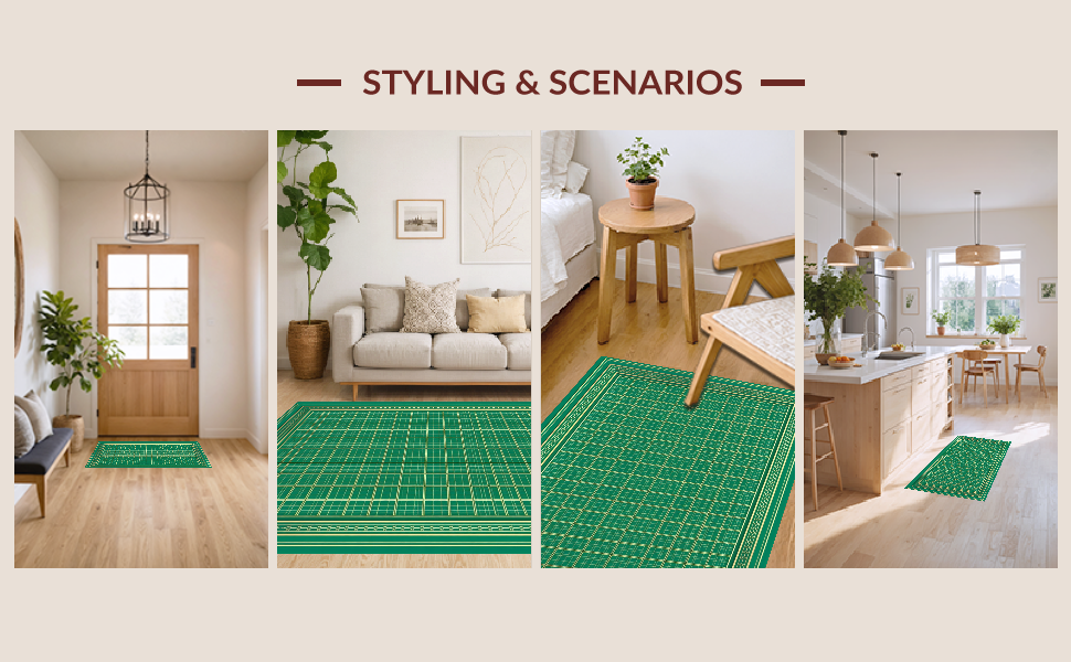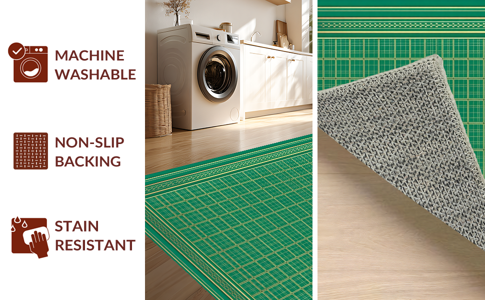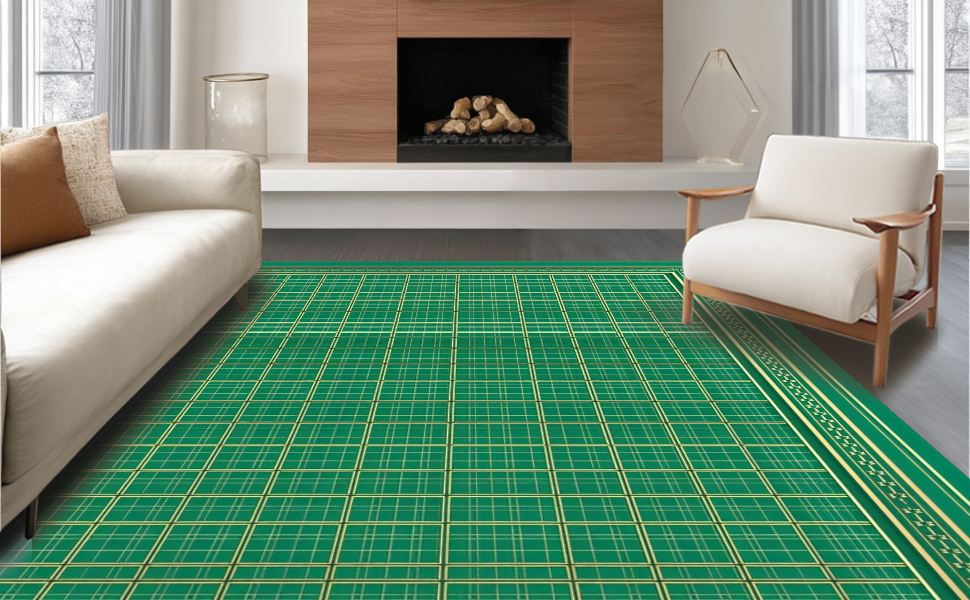 Ultra Soft Area Rug, Non Slip, Stain Resistant, Washable Area Rugs for Living Room, Bedroom, Emerald Geometric Elegance(Green) Overview: