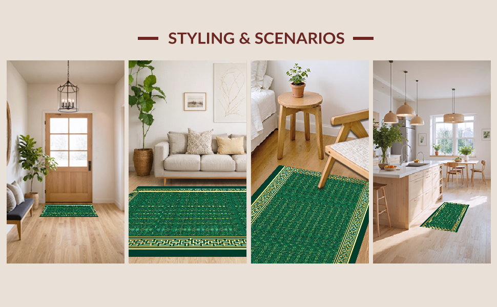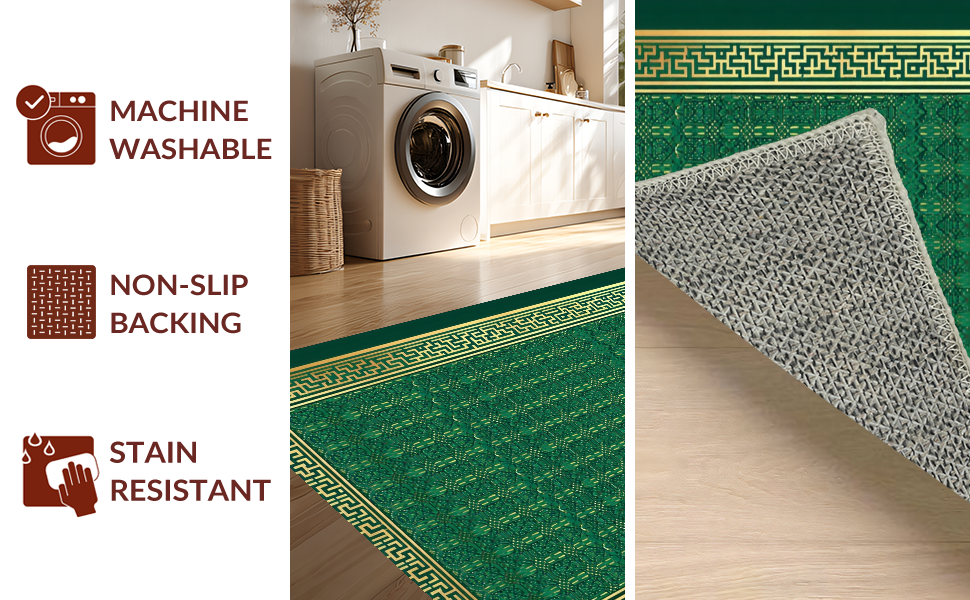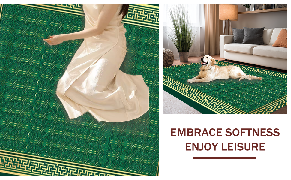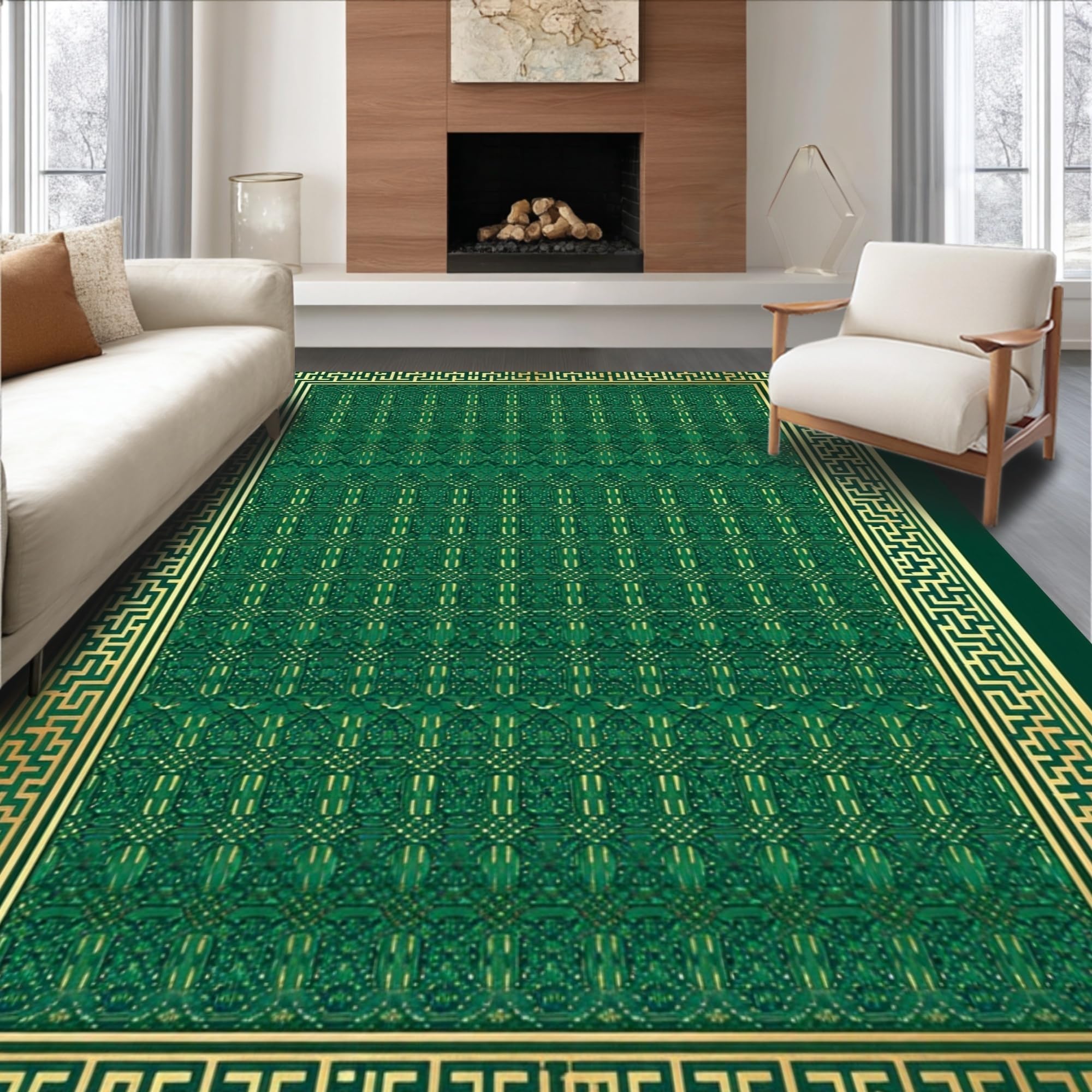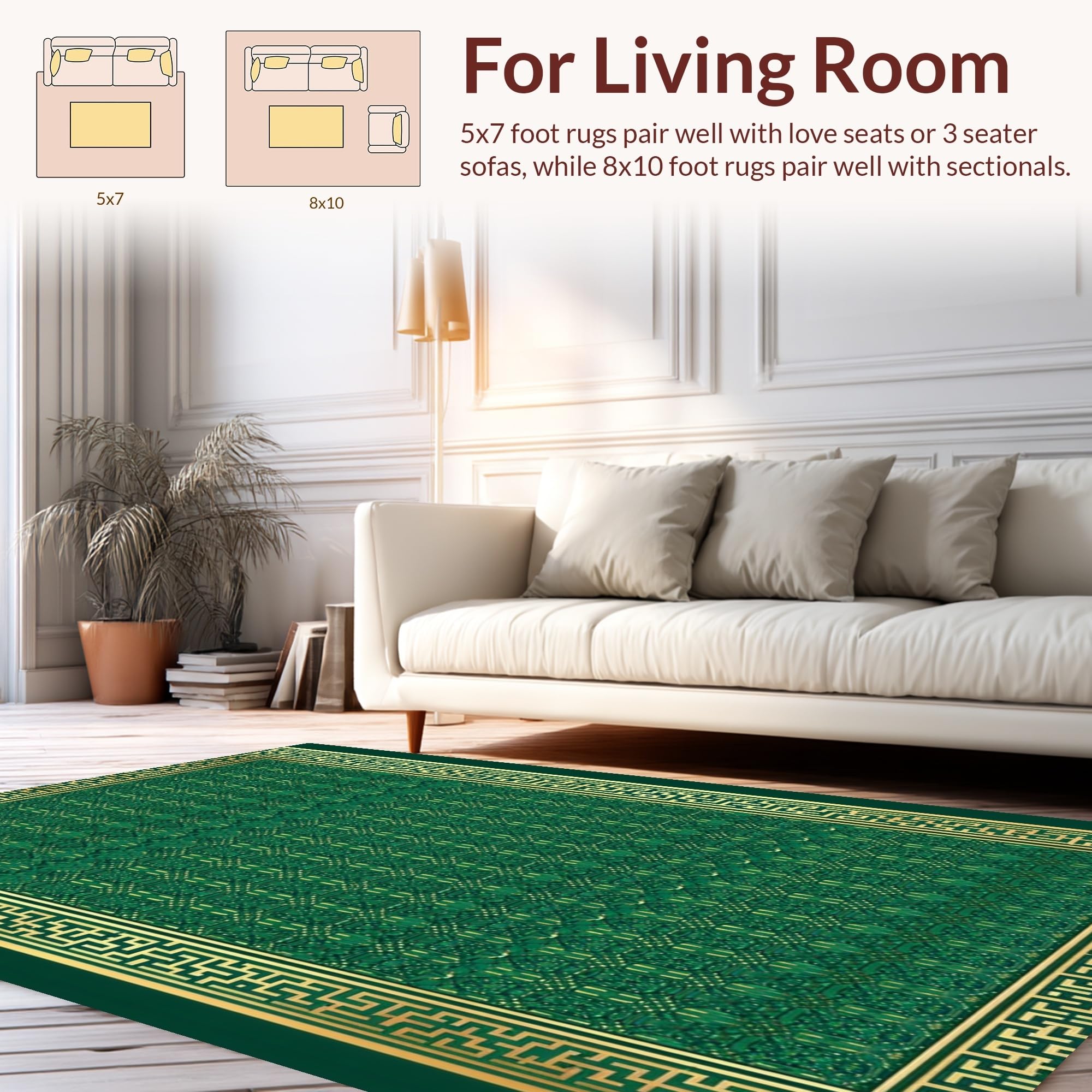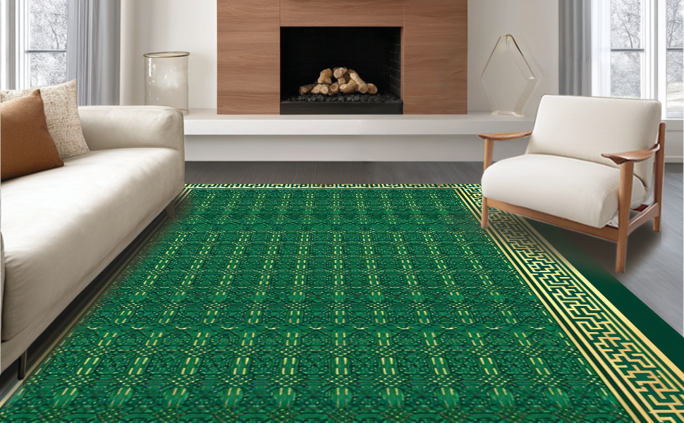 Ultra Soft Area Rug, Non Slip, Stain Resistant, Washable Area Rugs for Living Room, Bedroom, Emerald Green Geometric Elegance(Green) Overview: