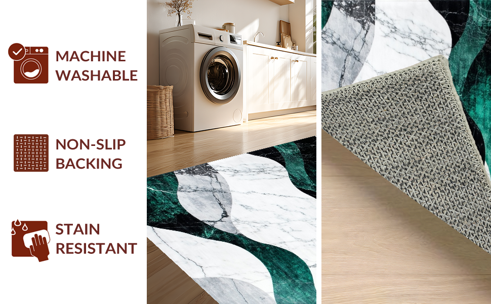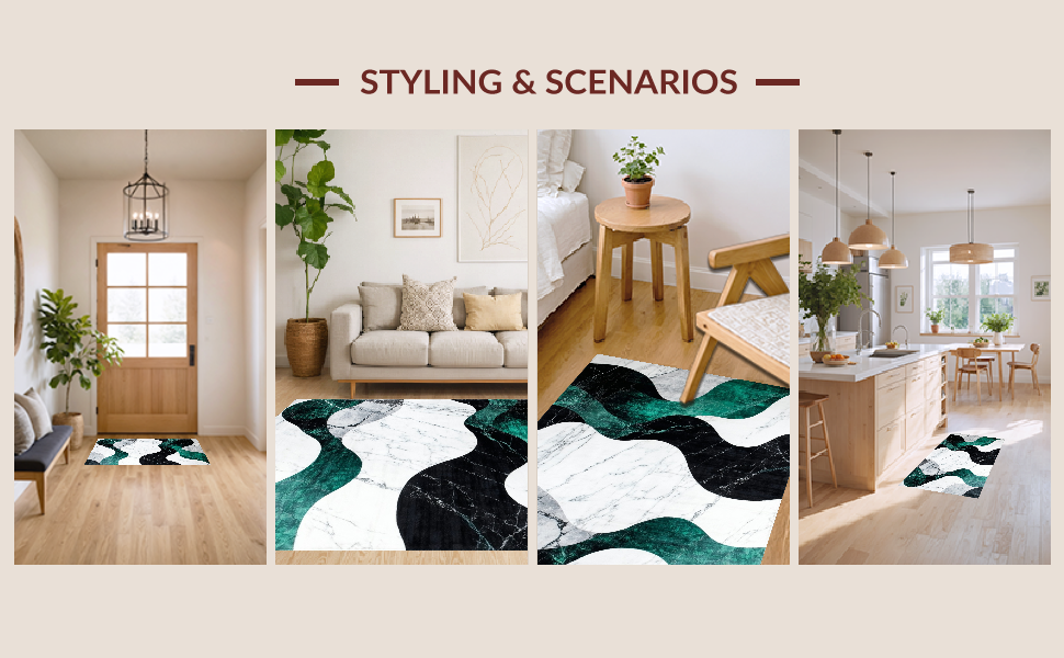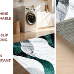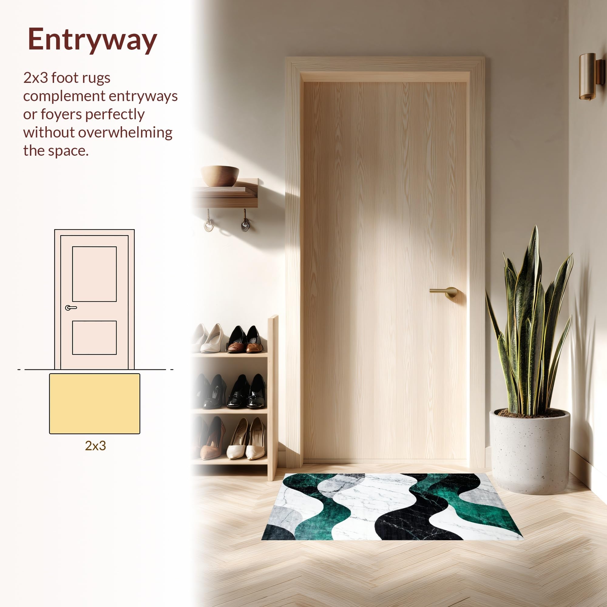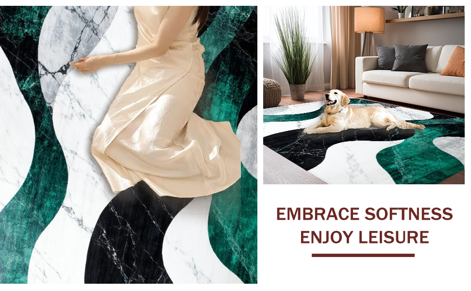 Ultra Soft Area Rug, Non Slip, Stain Resistant, Washable Area Rugs for Living Room, Bedroom, Emerald Swirl Abstract Elegance(White) Overview: