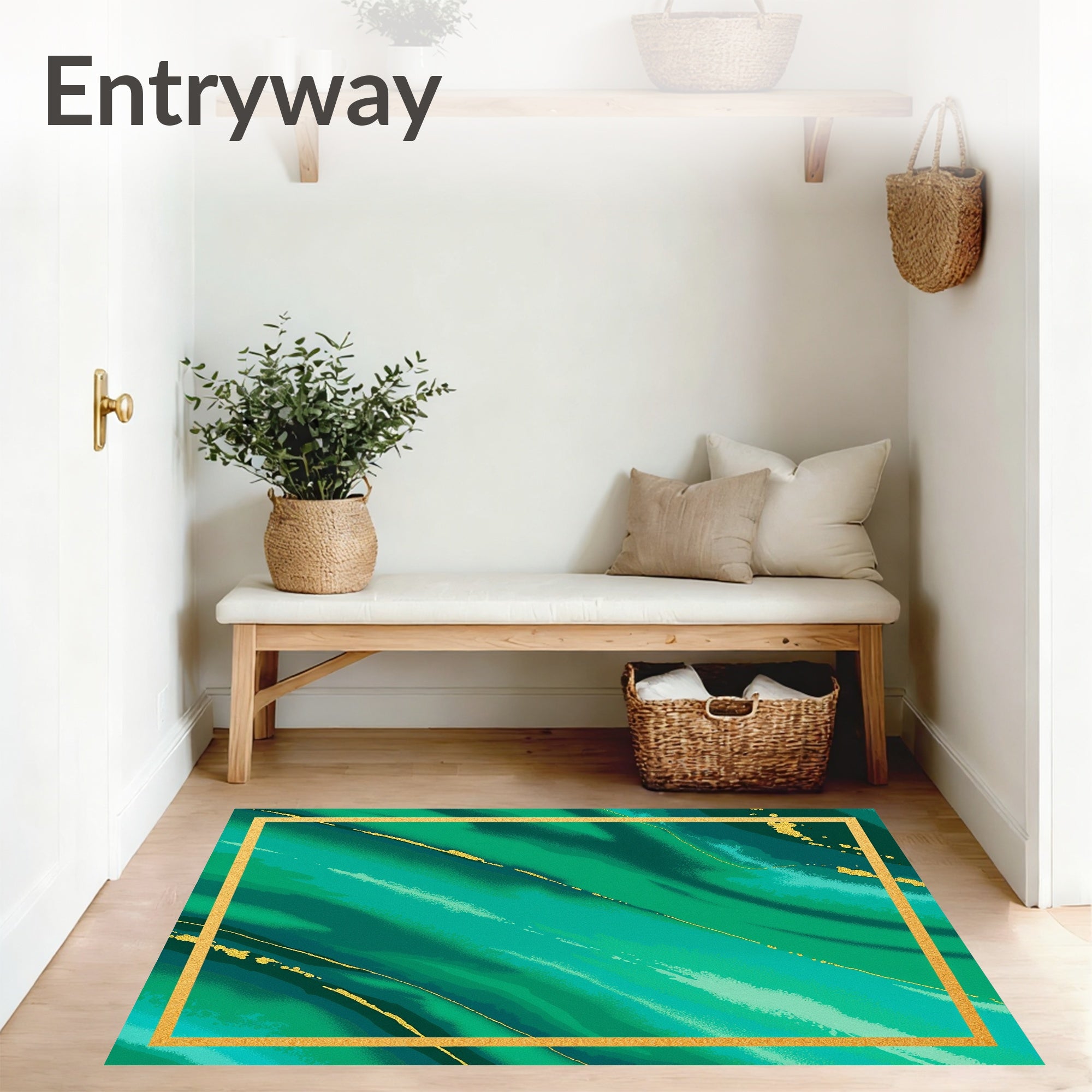Ultra Soft Area Rug, Non Slip, Stain Resistant, Washable Area Rugs for Living Room, Bedroom, Emerald Watercolor Splash Deluxe Artisan(Green) Overview: