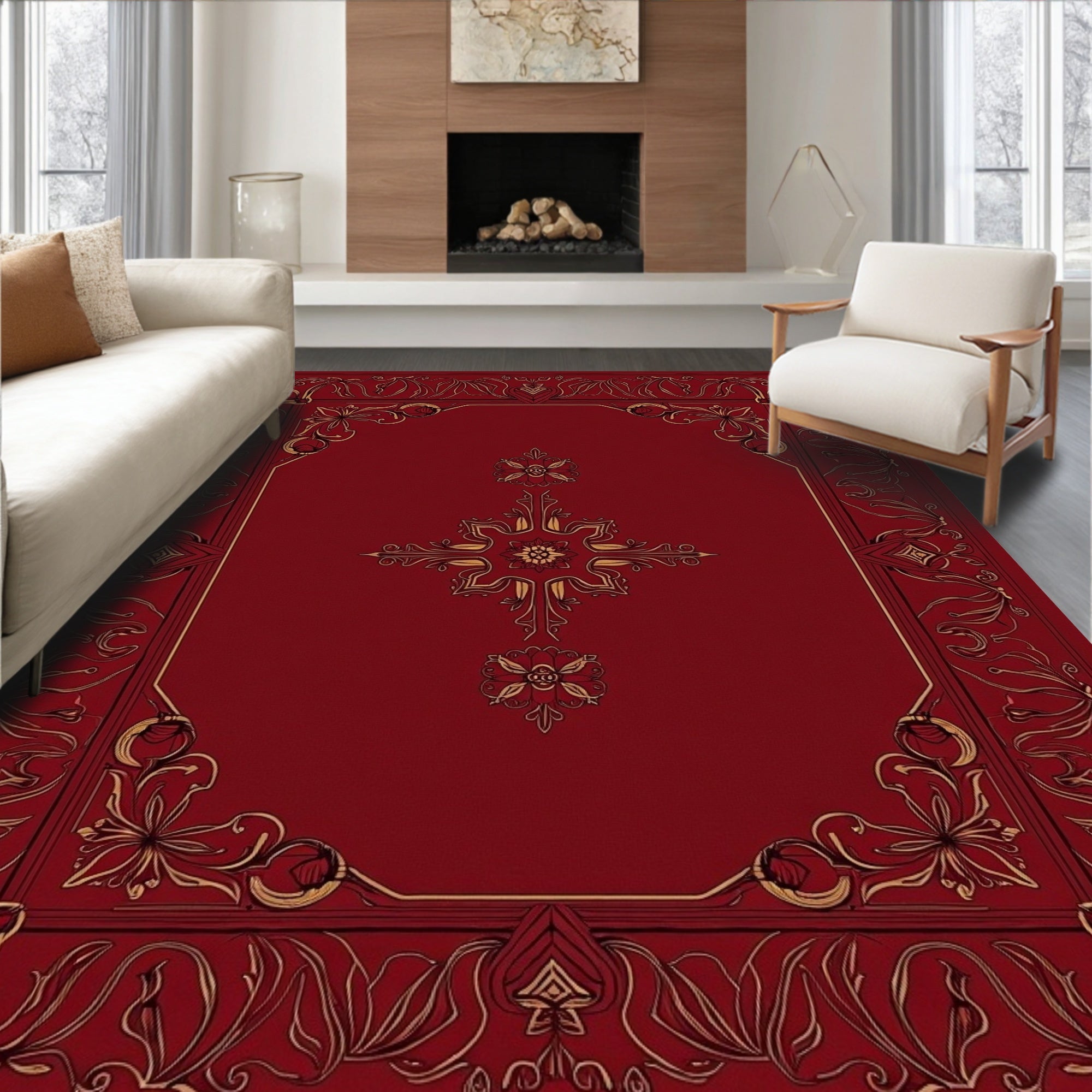 Ultra Soft Area Rug, Non Slip, Stain Resistant, Washable Area Rugs for Living Room, Bedroom, Enchanted Blossom Tapestry Artisan Handwoven Excellence(Red) Overview: