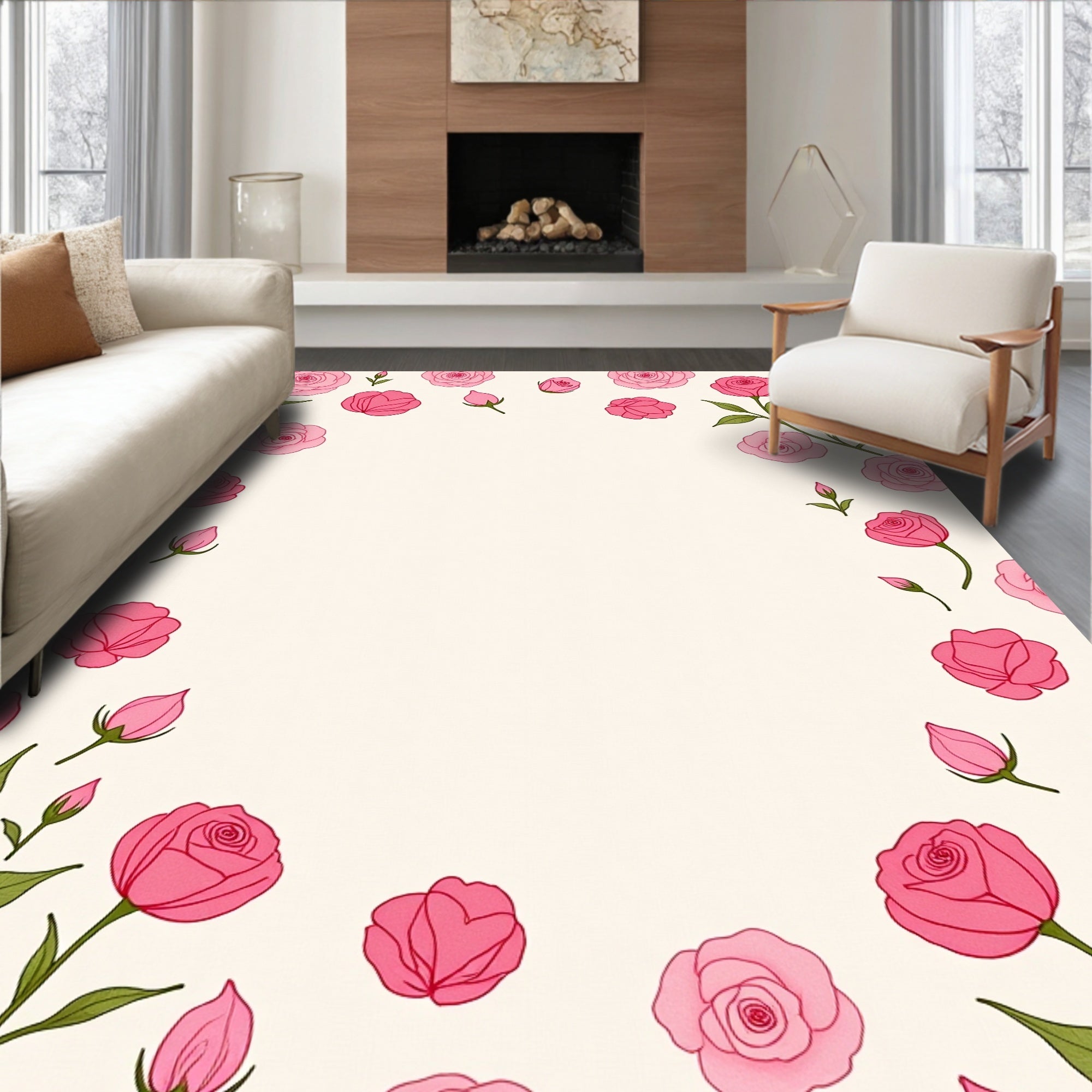 Ultra Soft Area Rug, Non Slip, Stain Resistant, Washable Area Rugs for Living Room, Bedroom, Enchanted Blossom Wonderland With Dreamy Petal Cascade(Pink) Overview: