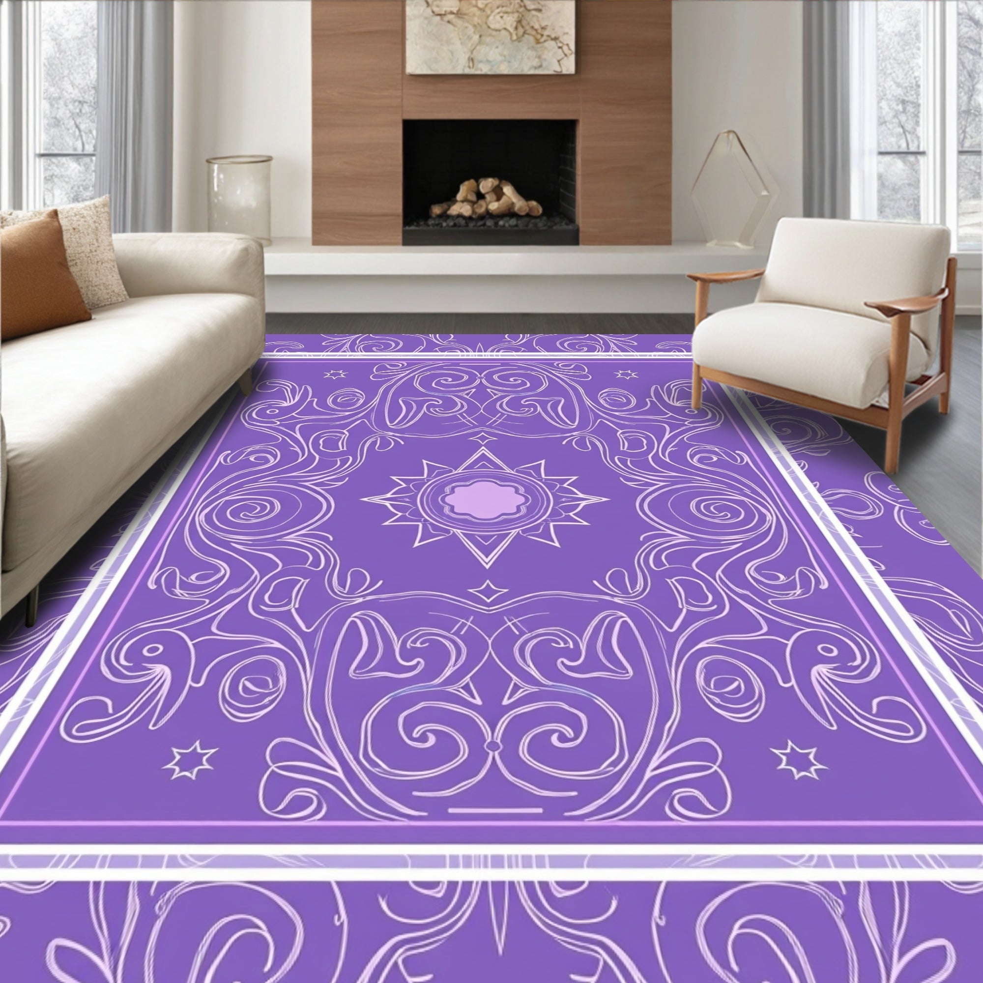 Ultra Soft Area Rug, Non Slip, Stain Resistant, Washable Area Rugs for Living Room, Bedroom, Enchanted Dreamscape Interlocking Swirl(Purple) Overview: