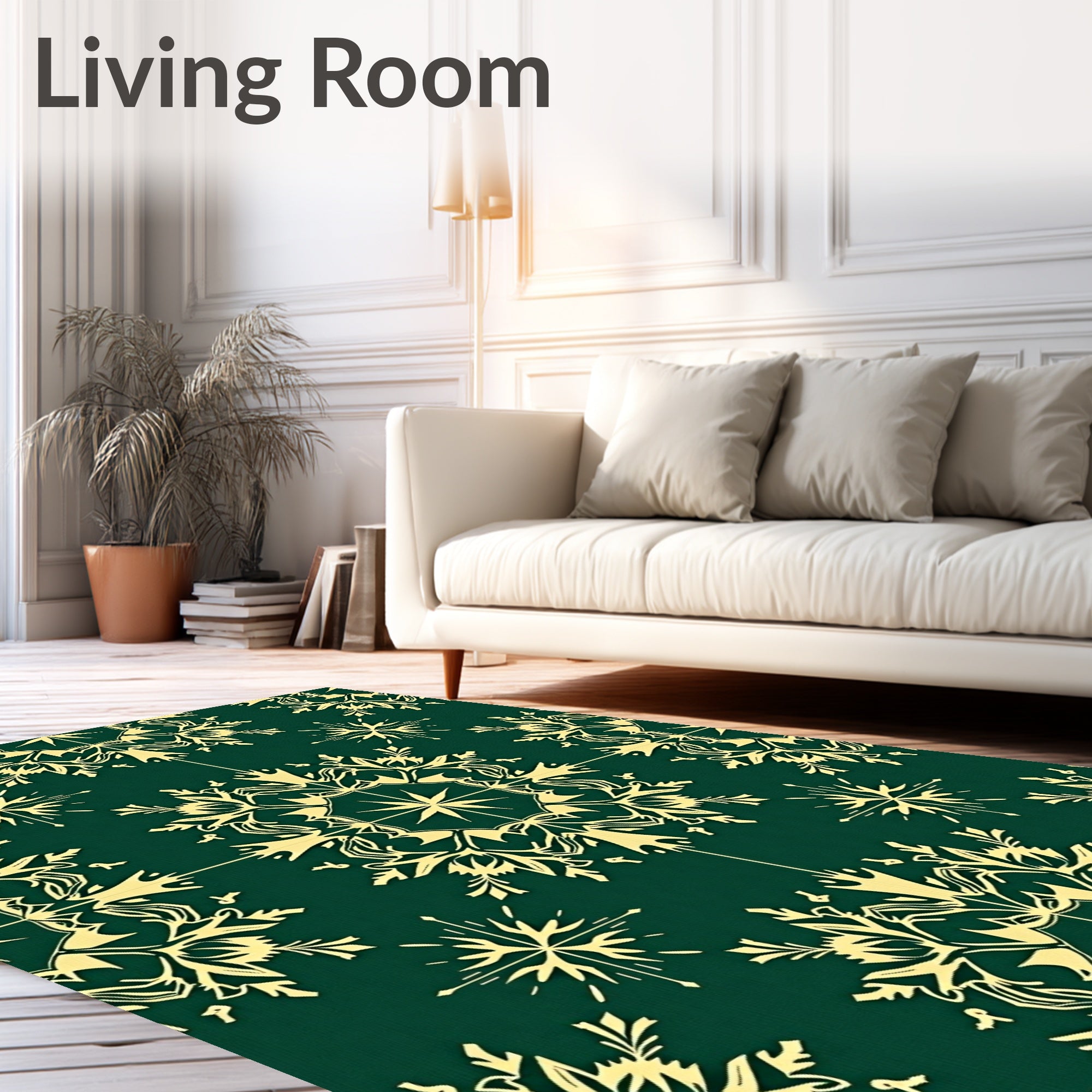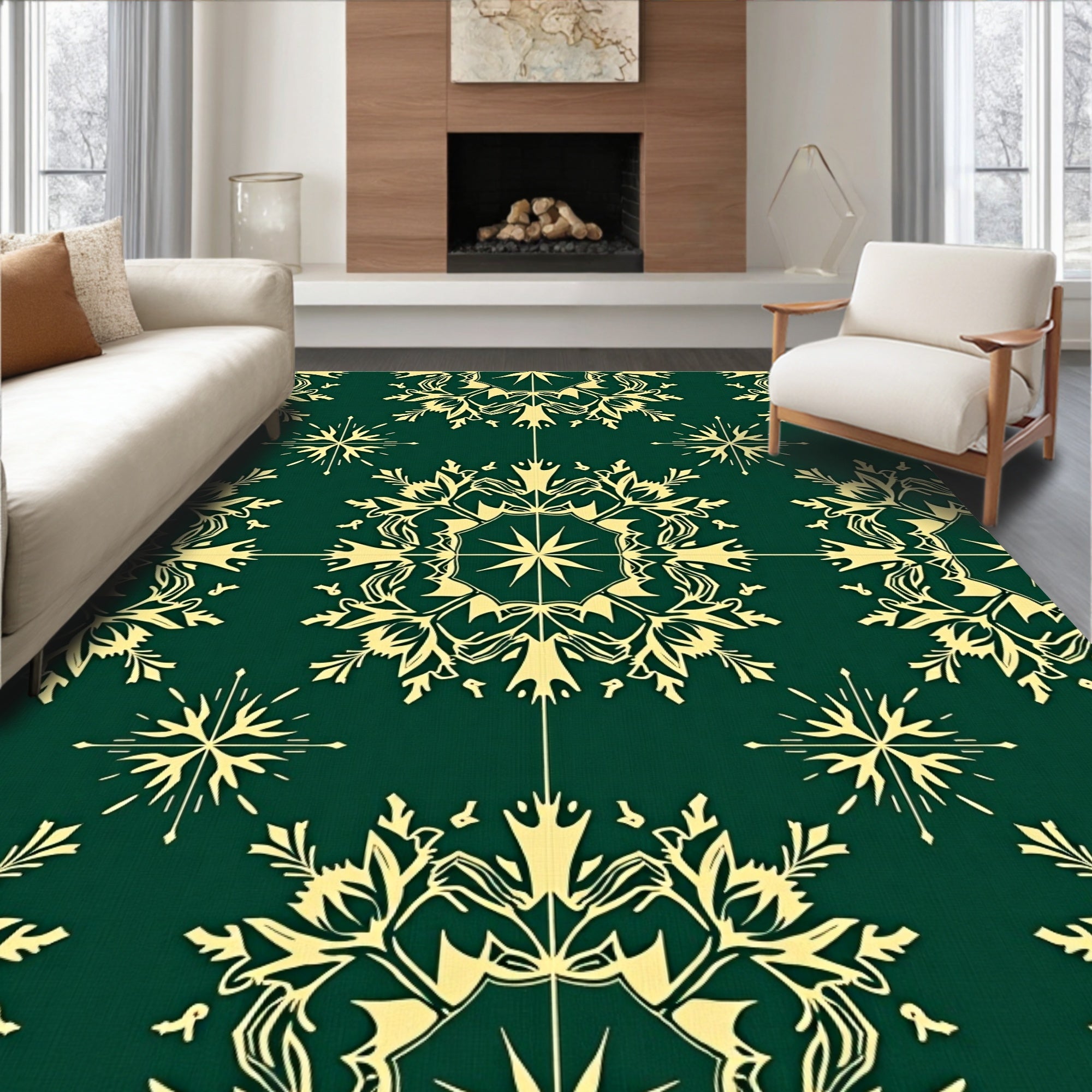 Ultra Soft Area Rug, Non Slip, Stain Resistant, Washable Area Rugs for Living Room, Bedroom, Enchanted Evergreen Snowflake Textured(Green) Overview: