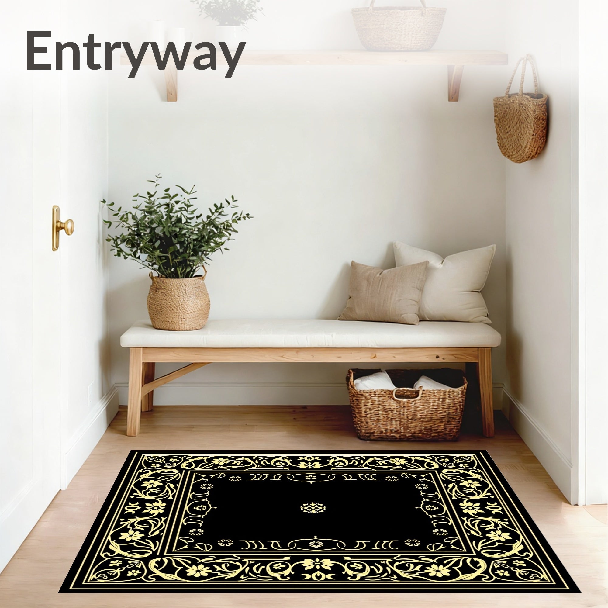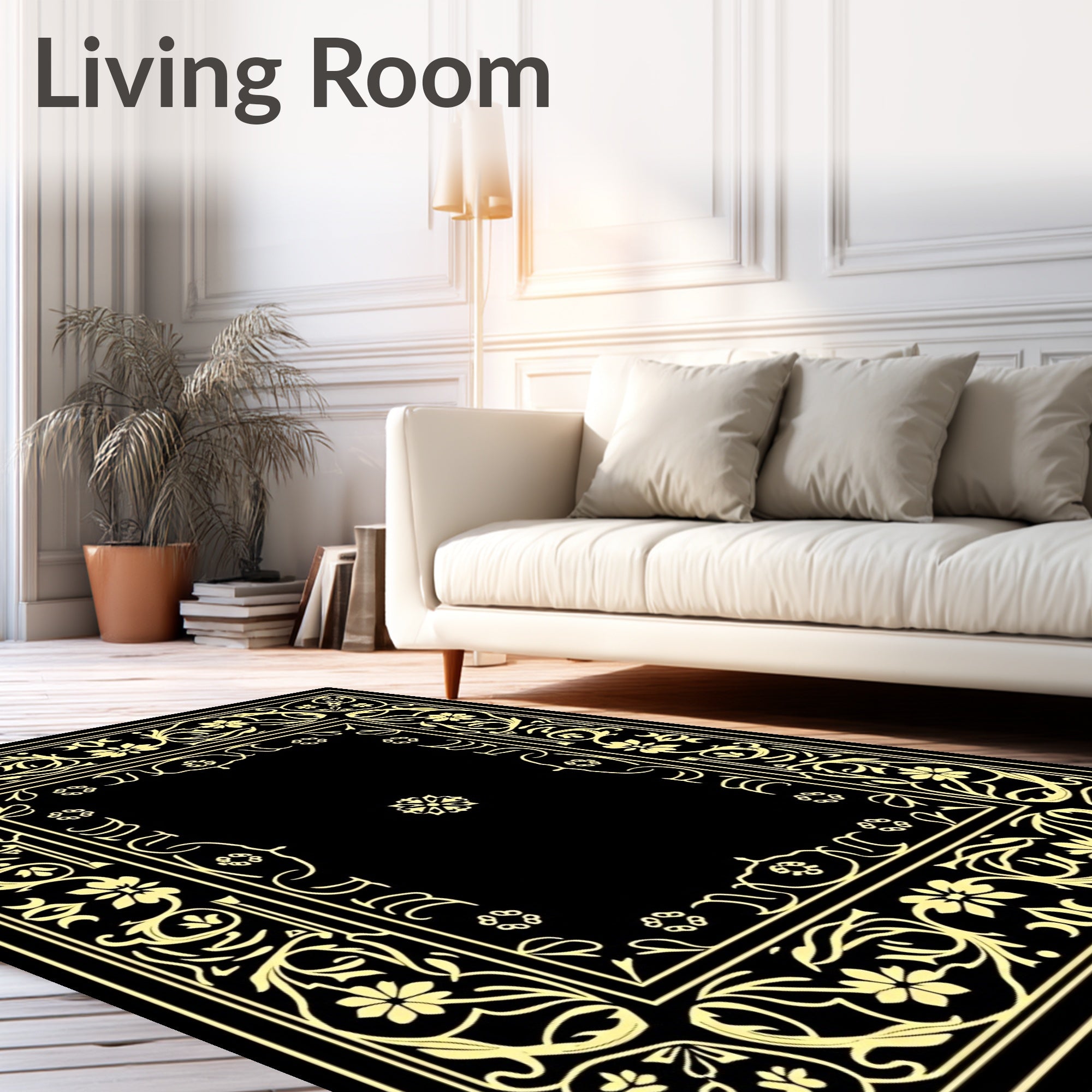 Flatwoven High Traffic Area Rug, Enchanted Floral Vine Symmetrical Decorative Artistic Masterwork, Non Slip, Stain Resistant, Washable Area Rugs for Living Room, Bedroom (Black) Overview: