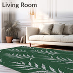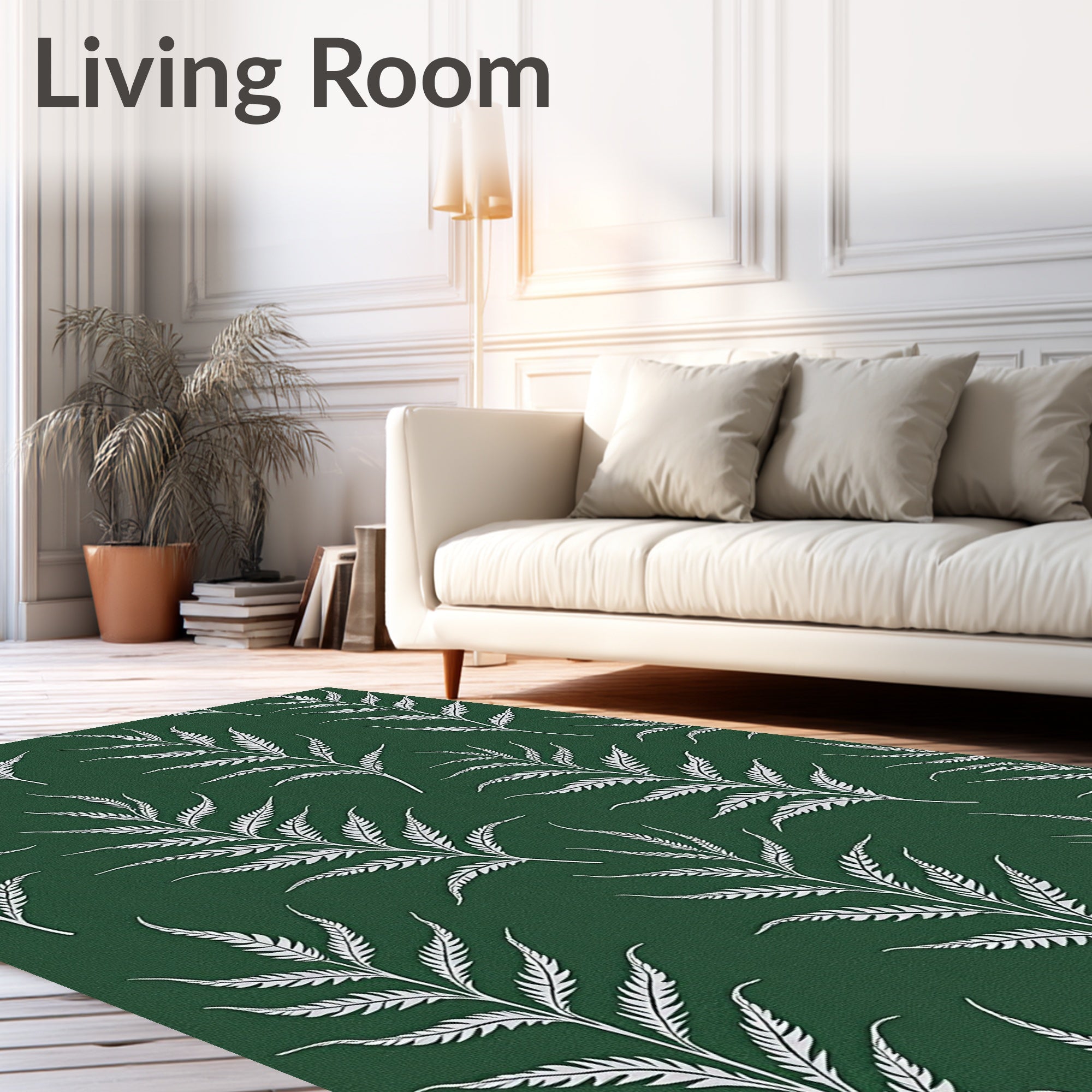 Ultra Soft Area Rug, Non Slip, Stain Resistant, Washable Area Rugs for Living Room, Bedroom, Enchanted Forest Canopy with Mystical Fern Silhouettes(Green) Overview: