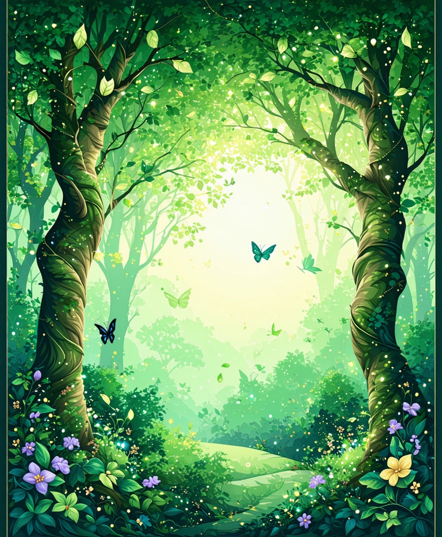 Enchanted Forest Floor Covering Mystical Boho Tree & Fairy(Green)