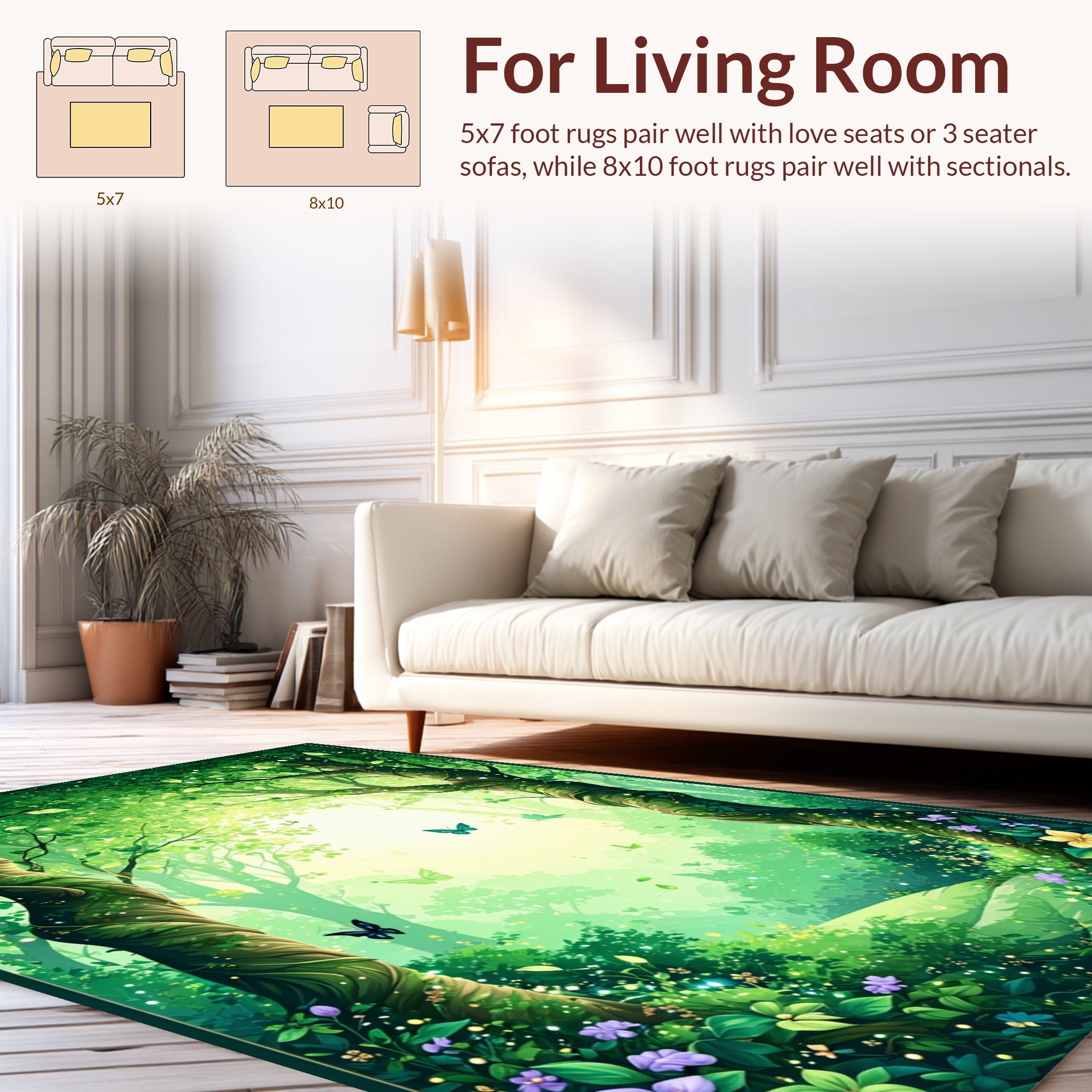 Flatwoven High Traffic Area Rug, Enchanted Forest Floor Covering Mystical Boho Tree & Fairy, Non Slip, Stain Resistant, Washable Area Rugs for Living Room, Bedroom (Green) Overview: