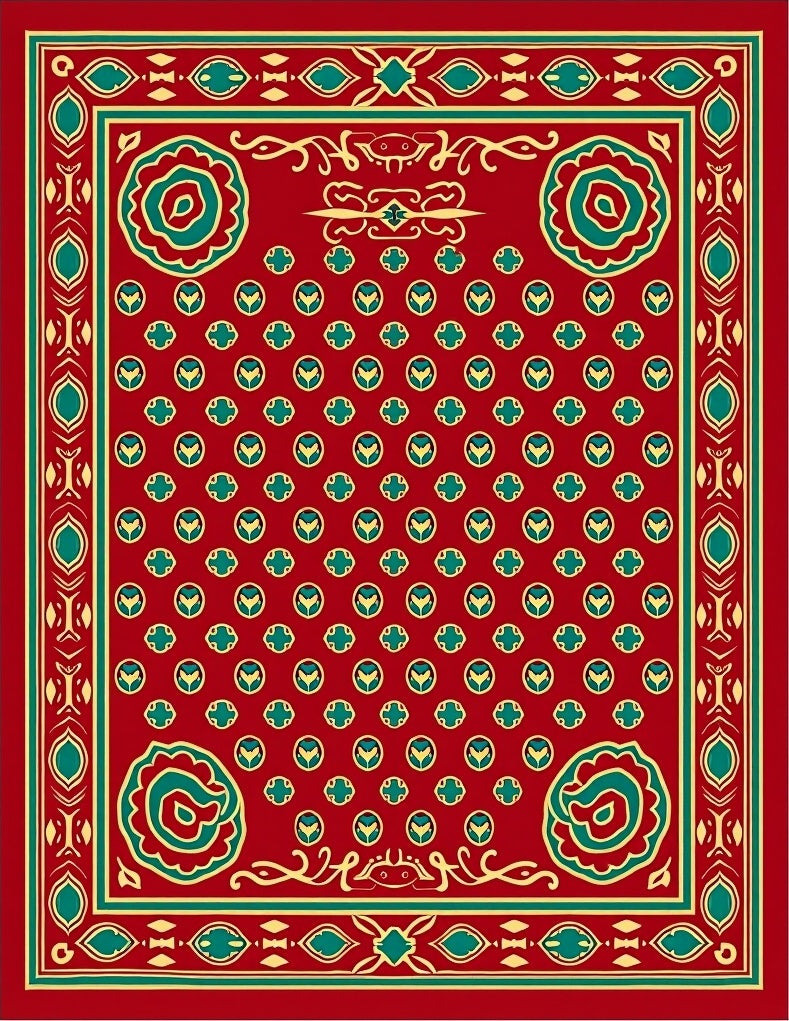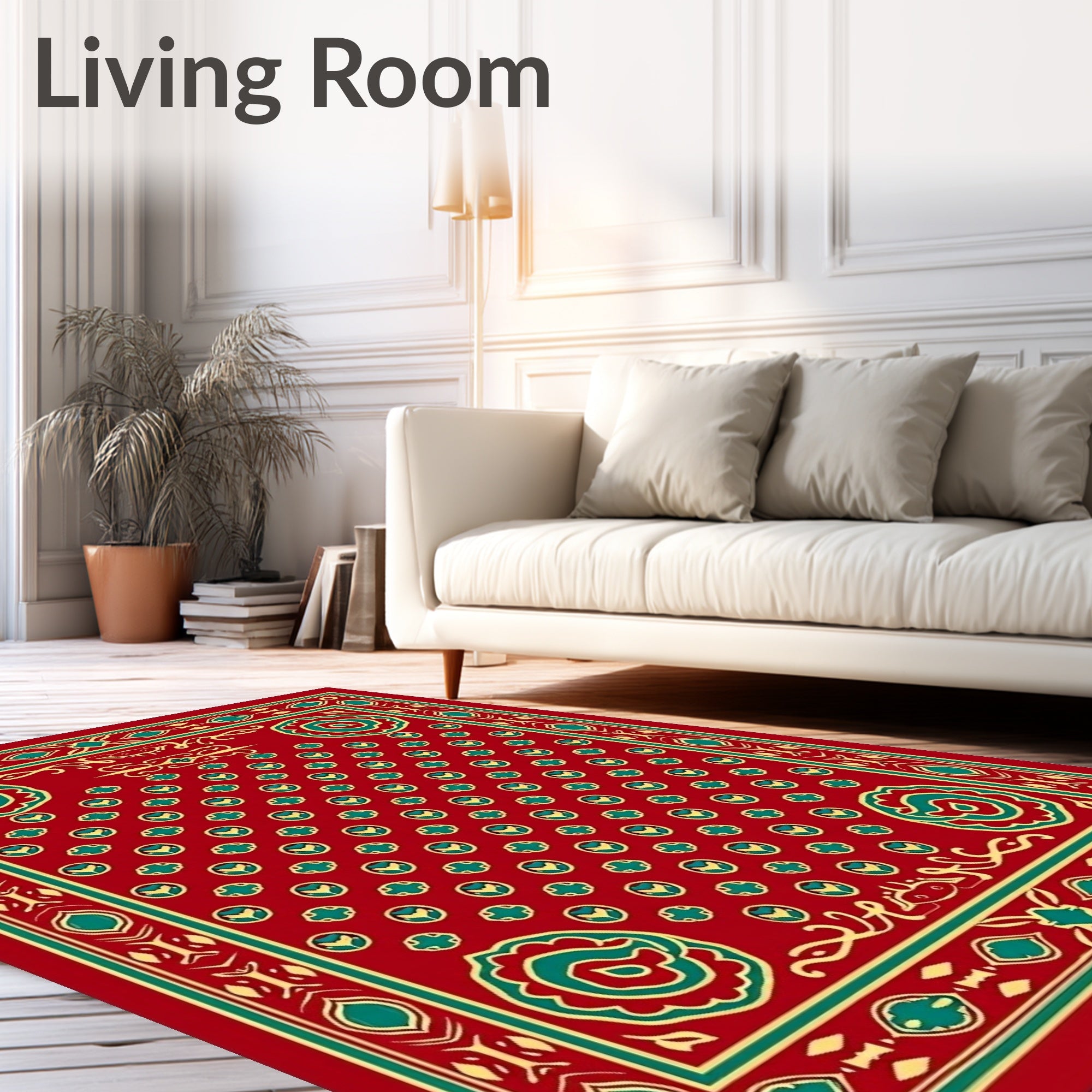 Ultra Soft Area Rug, Non Slip, Stain Resistant, Washable Area Rugs for Living Room, Bedroom, Enchanted Forest Mosaic with Abstract Animal Inspired and Boho Flair(Red) Overview: