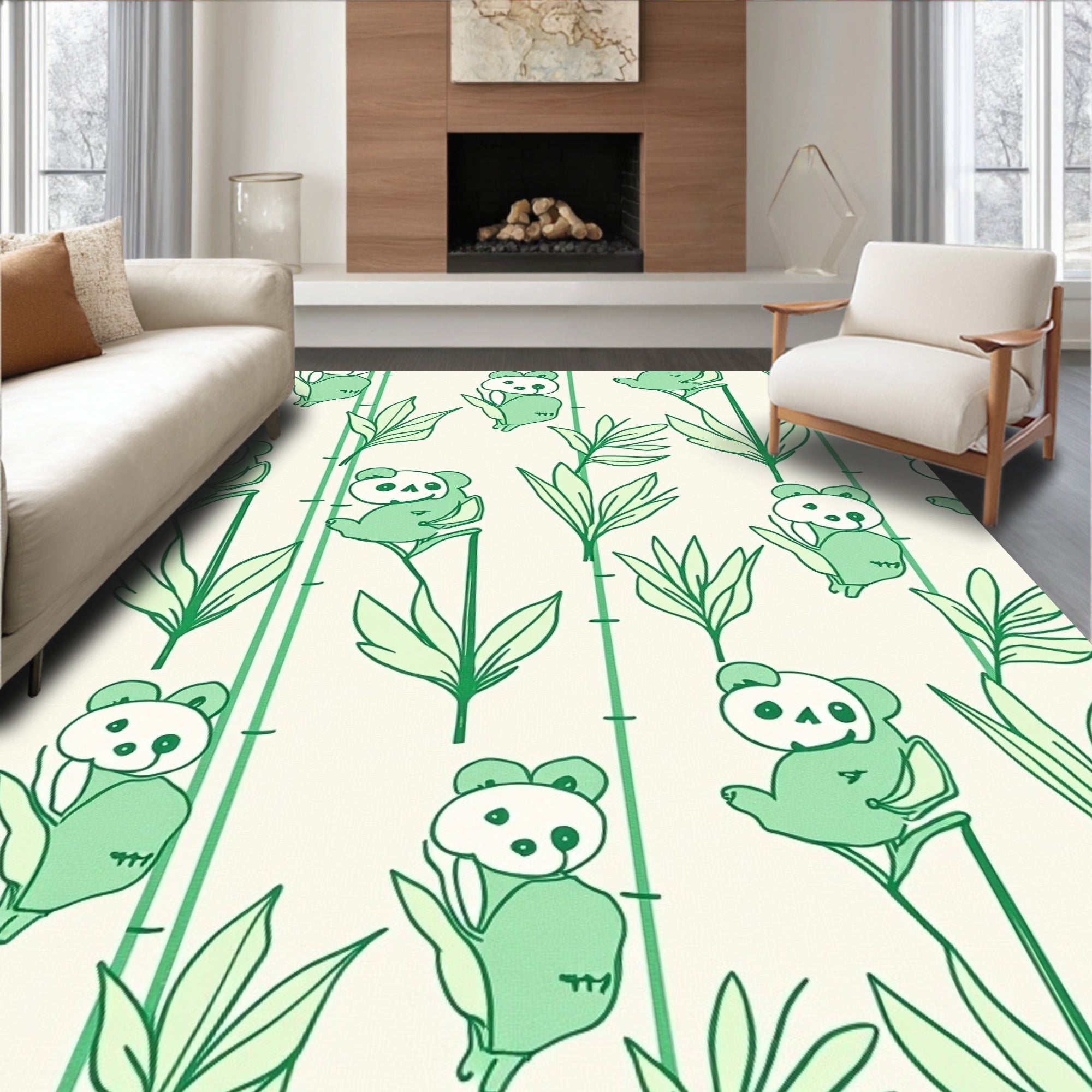 Ultra Soft Area Rug, Non Slip, Stain Resistant, Washable Area Rugs for Living Room, Bedroom, Enchanted Forest Panda Adventure Decorative(Green) Overview:
