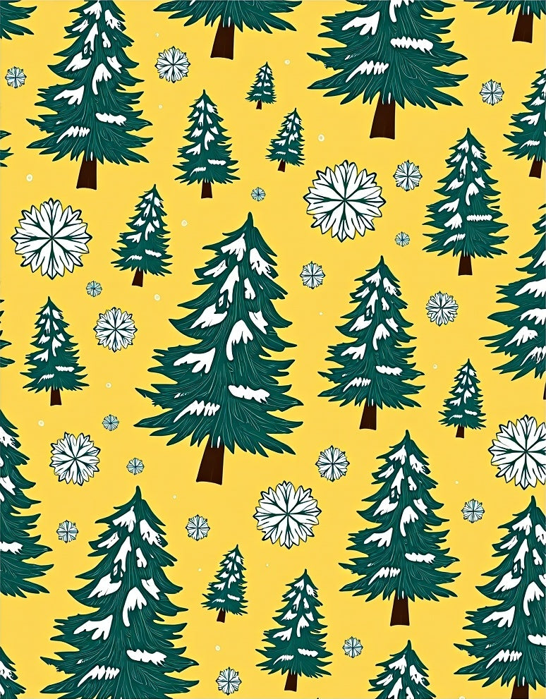Enchanted Forest Pine Tree Snow Covered Landscape Holiday Floor Covering(Yellow)