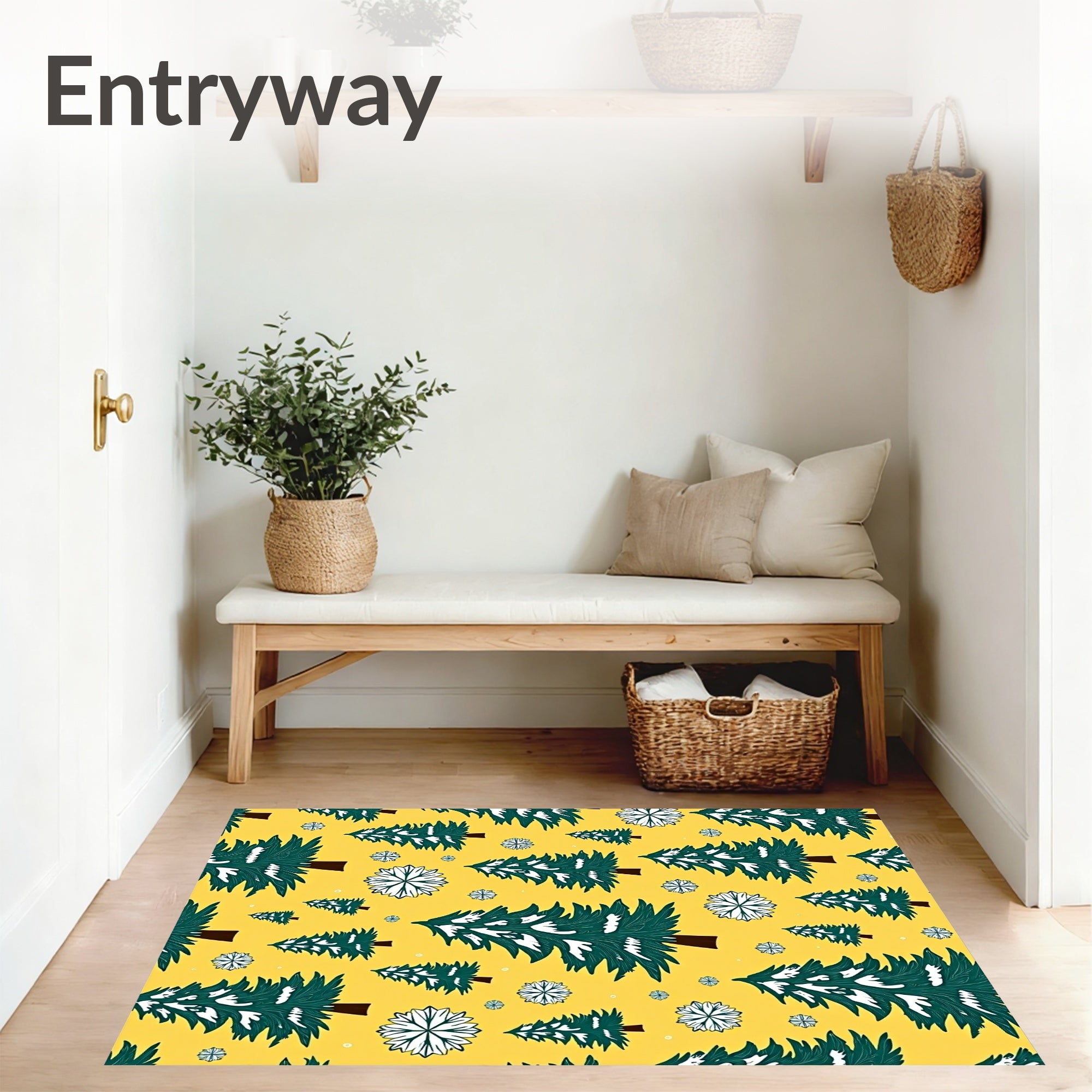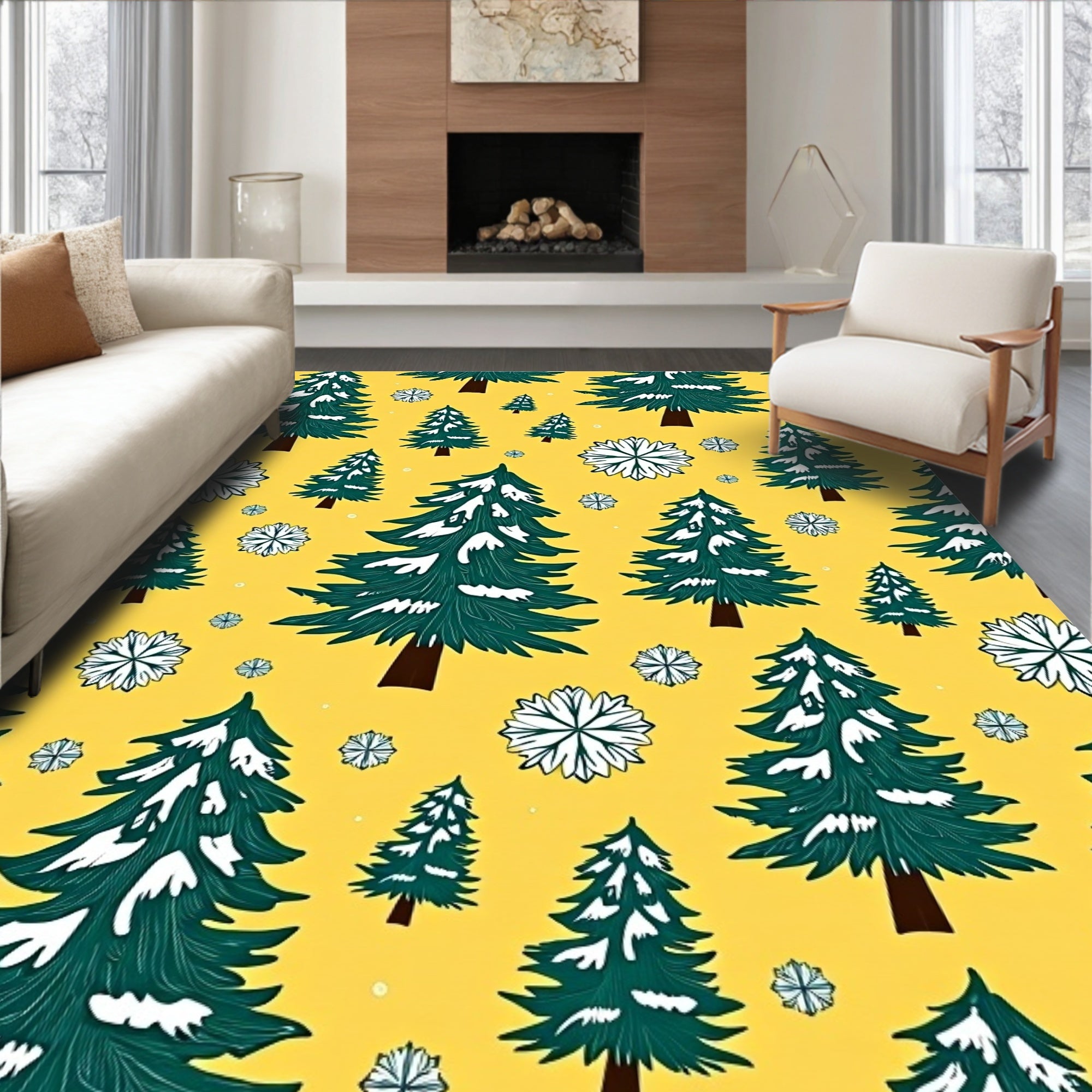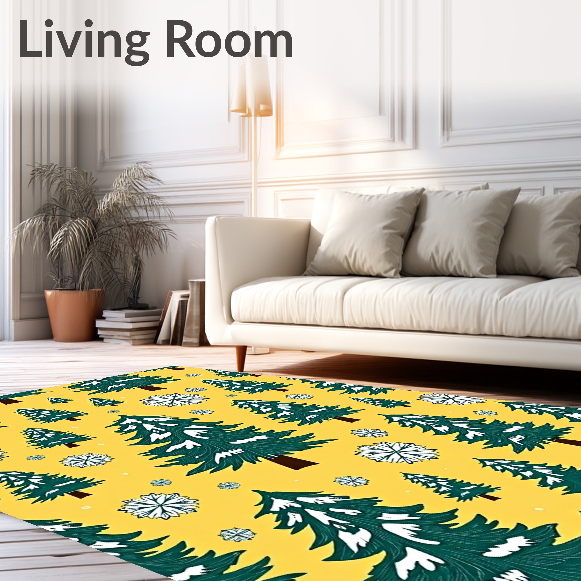 Ultra Soft Area Rug, Non Slip, Stain Resistant, Washable Area Rugs for Living Room, Bedroom, Enchanted Forest Pine Tree Snow Covered Landscape Holiday Floor Covering(Yellow) Overview: