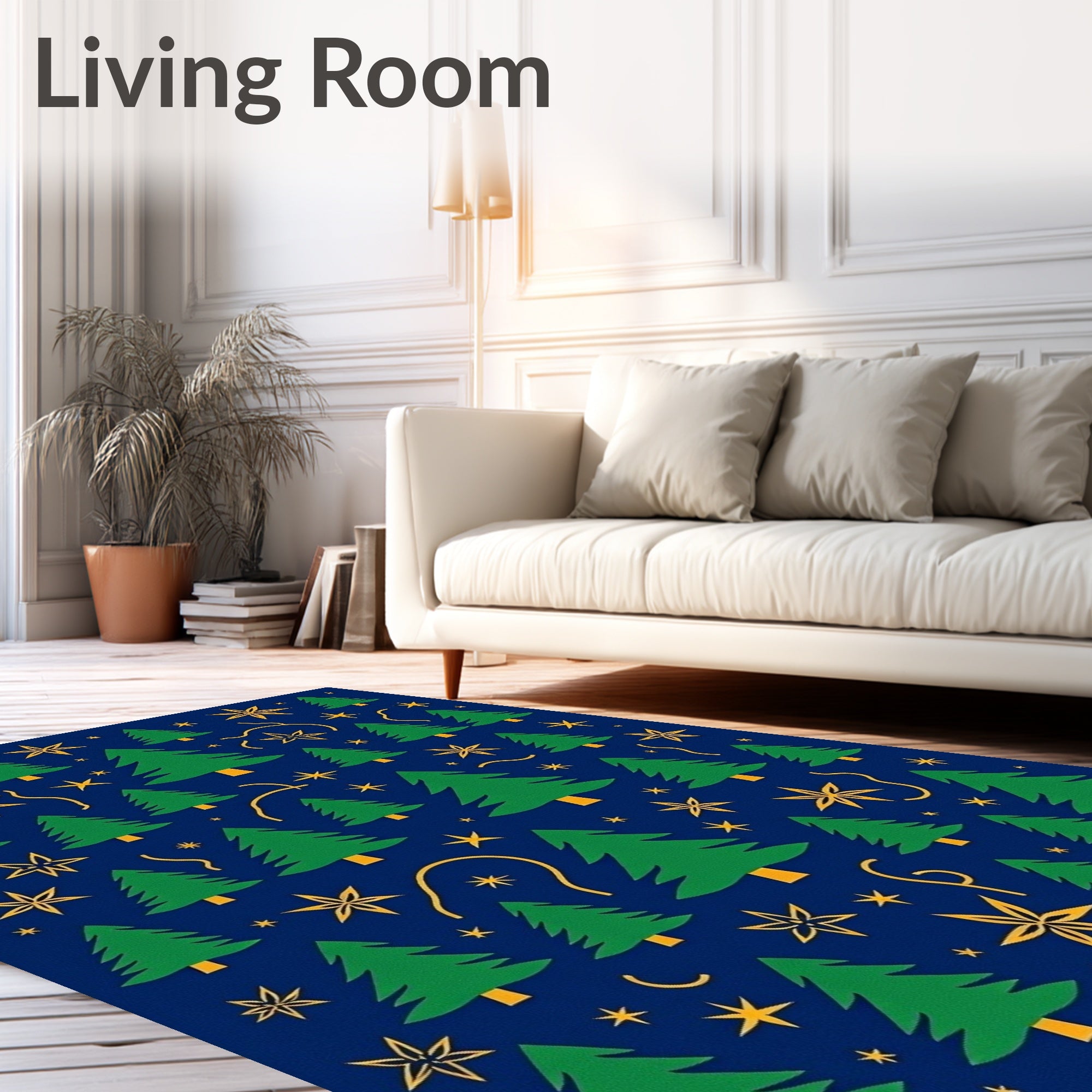 Ultra Soft Area Rug, Non Slip, Stain Resistant, Washable Area Rugs for Living Room, Bedroom, Enchanted Forest Pine Tree with Constellation(Blue) Overview: