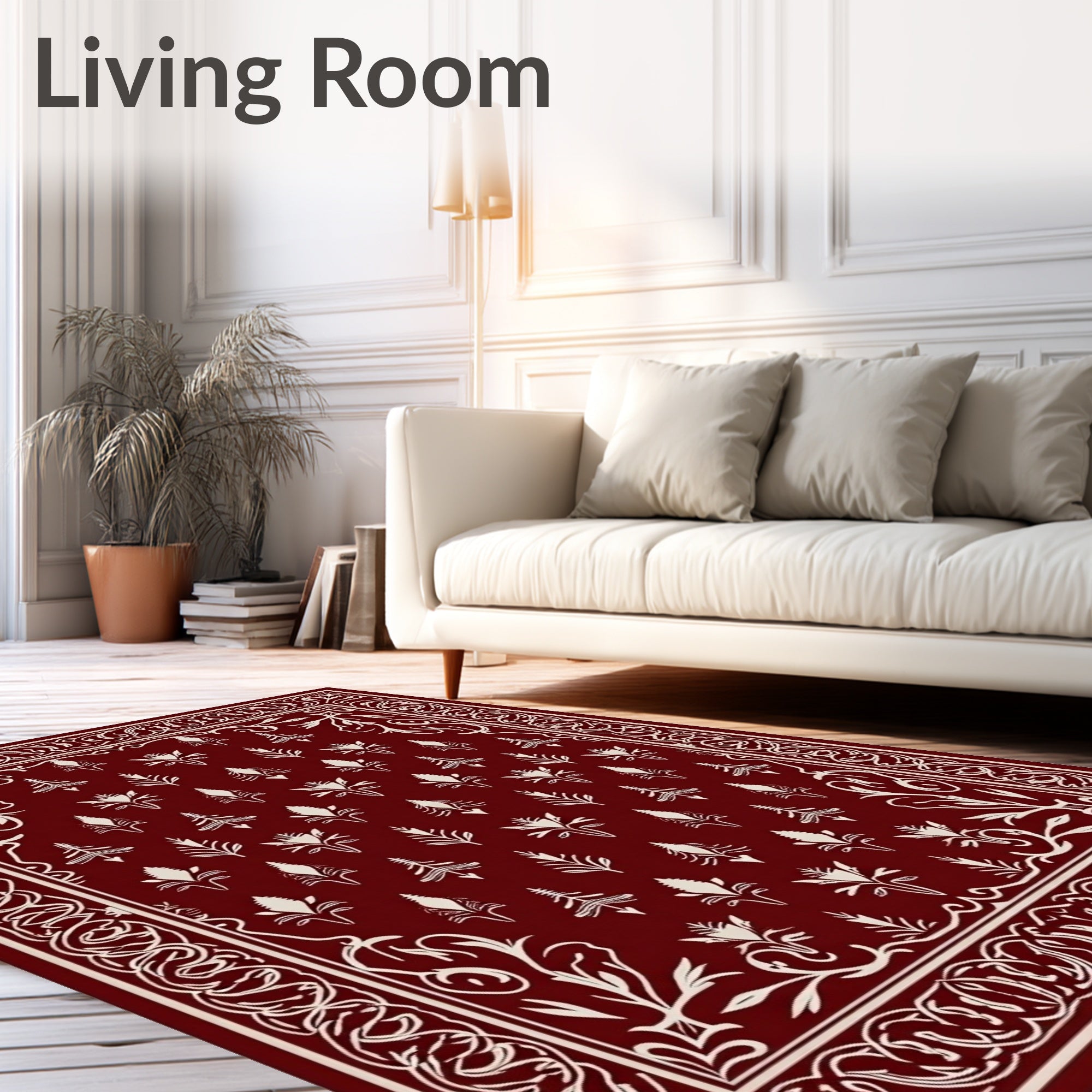 Ultra Soft Area Rug, Non Slip, Stain Resistant, Washable Area Rugs for Living Room, Bedroom, Enchanted Forest Pinecone Leaf Swirl Heirloom(Burgundy) Overview: