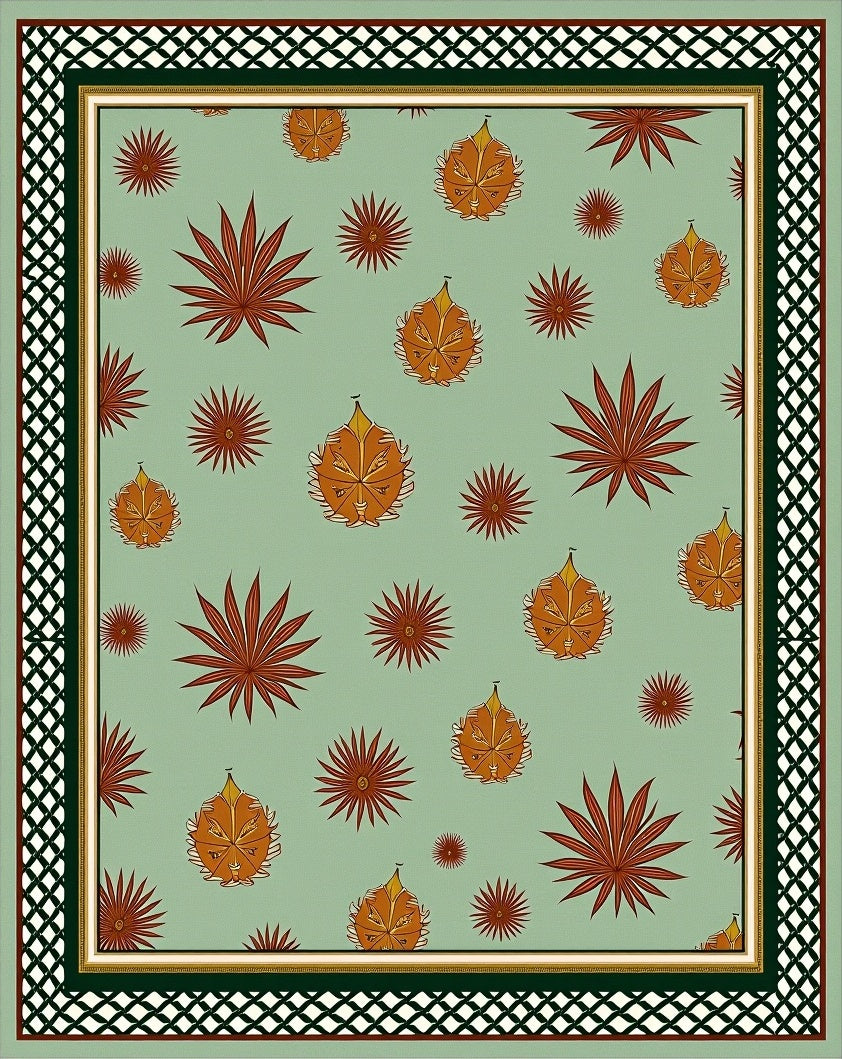 Enchanted Forest Pinecone Motif with Houndstooth Edge Accent(Green)
