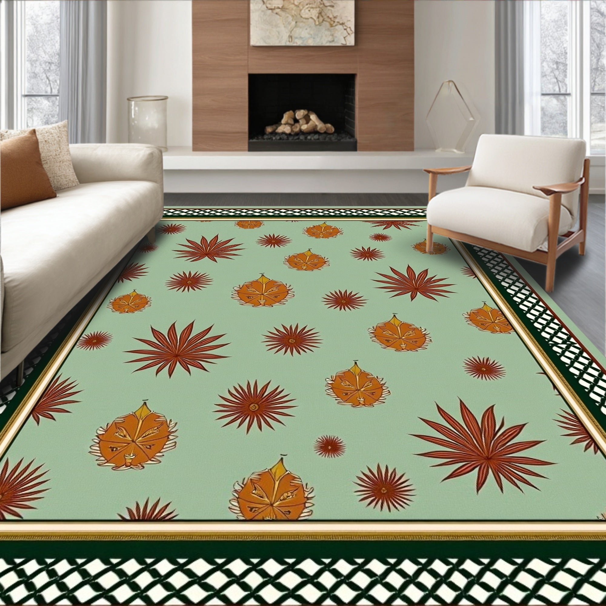 Ultra Soft Area Rug, Non Slip, Stain Resistant, Washable Area Rugs for Living Room, Bedroom, Enchanted Forest Pinecone Motif with Houndstooth Edge Accent(Green) Overview:
