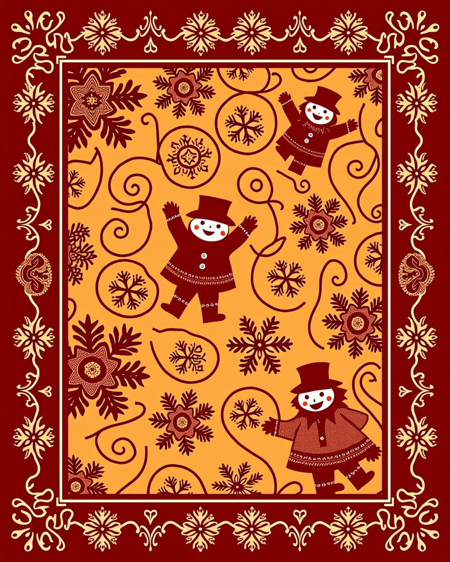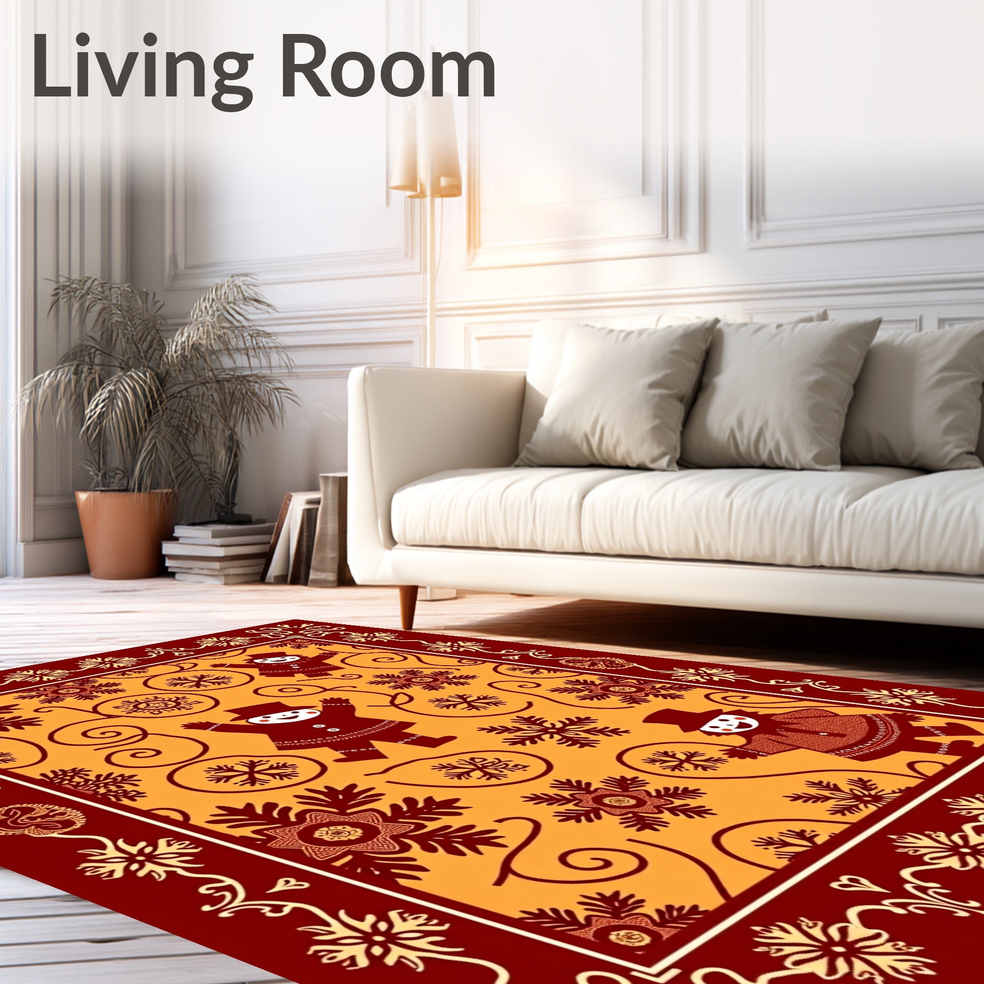 Ultra Soft Area Rug, Non Slip, Stain Resistant, Washable Area Rugs for Living Room, Bedroom, Enchanted Forest Snowman Surrounded by Sparkling Flurry Filigree(Red) Overview:
