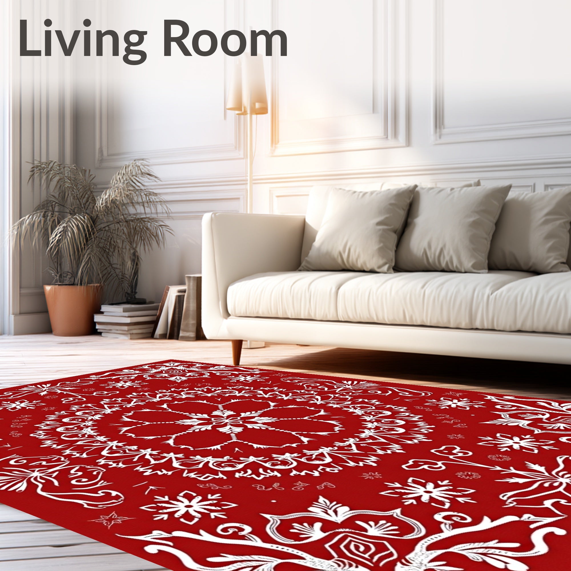 Ultra Soft Area Rug, Non Slip, Stain Resistant, Washable Area Rugs for Living Room, Bedroom, Enchanted Frosty Crystal Elegant Seasonal Celebration Decorative(Red) Overview: