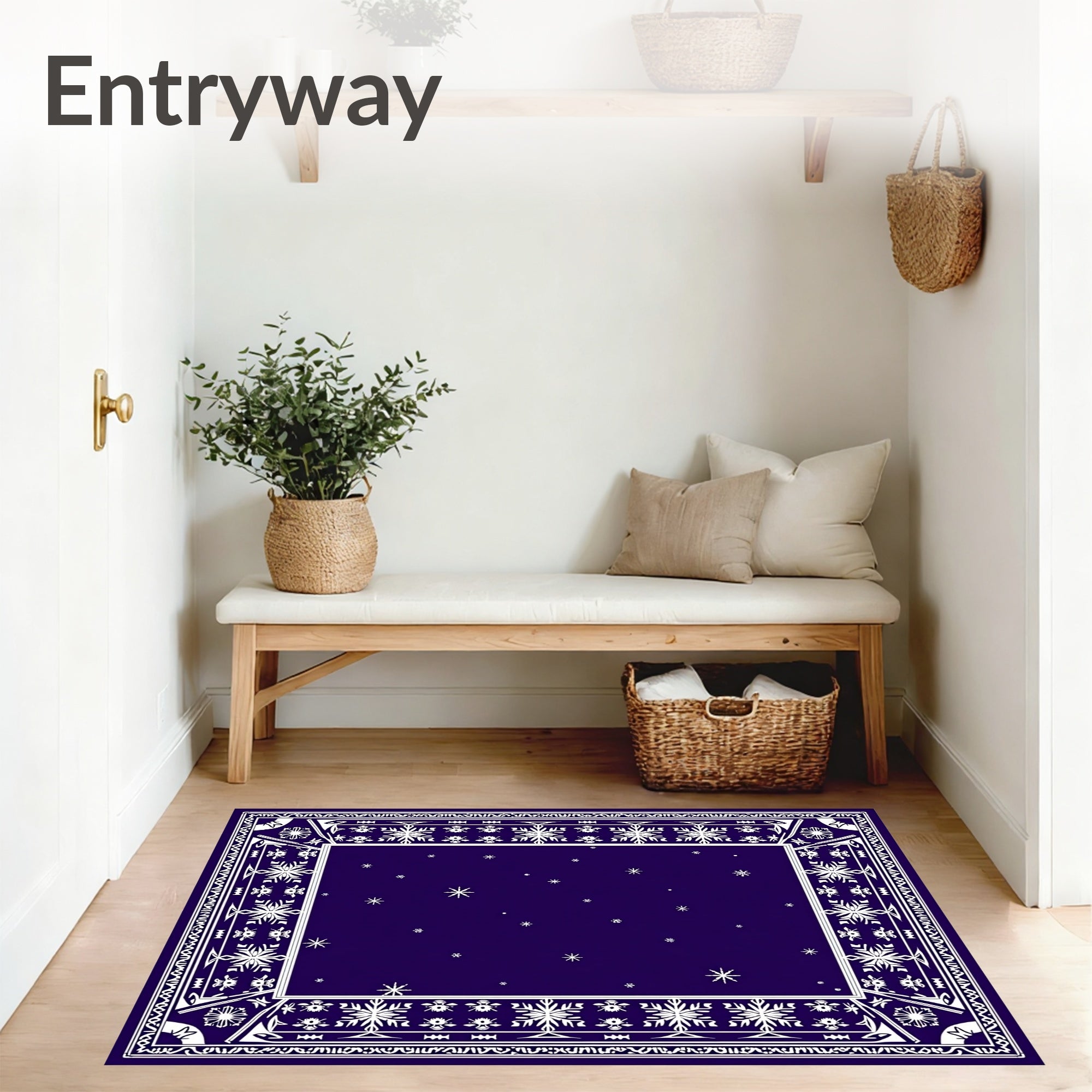 Flatwoven High Traffic Area Rug, Enchanted Frosty Night Sky Celestial Sparkling Mystical, Non Slip, Stain Resistant, Washable Area Rugs for Living Room, Bedroom (Purple) Overview: