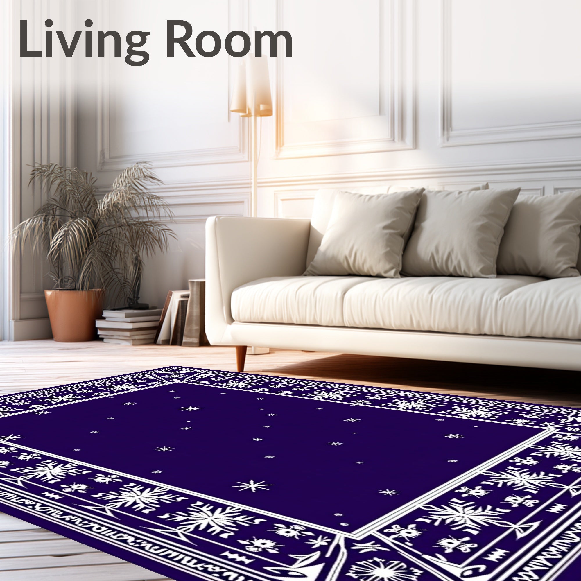 Ultra Soft Area Rug, Non Slip, Stain Resistant, Washable Area Rugs for Living Room, Bedroom, Enchanted Frosty Night Sky Celestial Sparkling Mystical(Purple) Overview:
