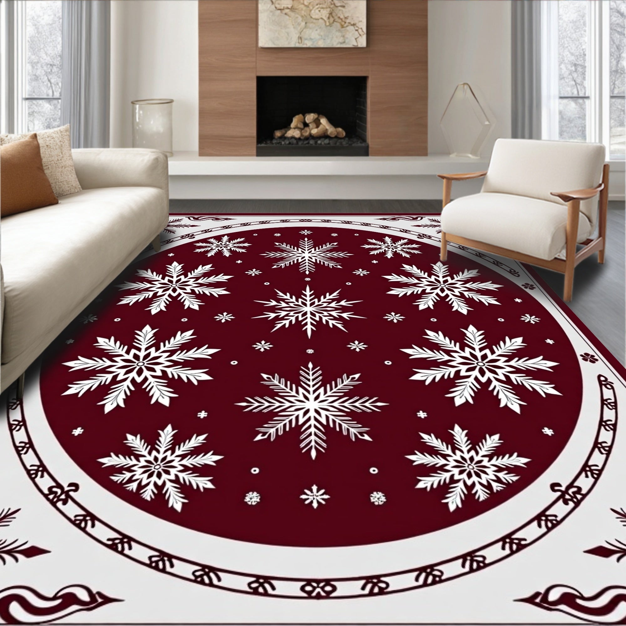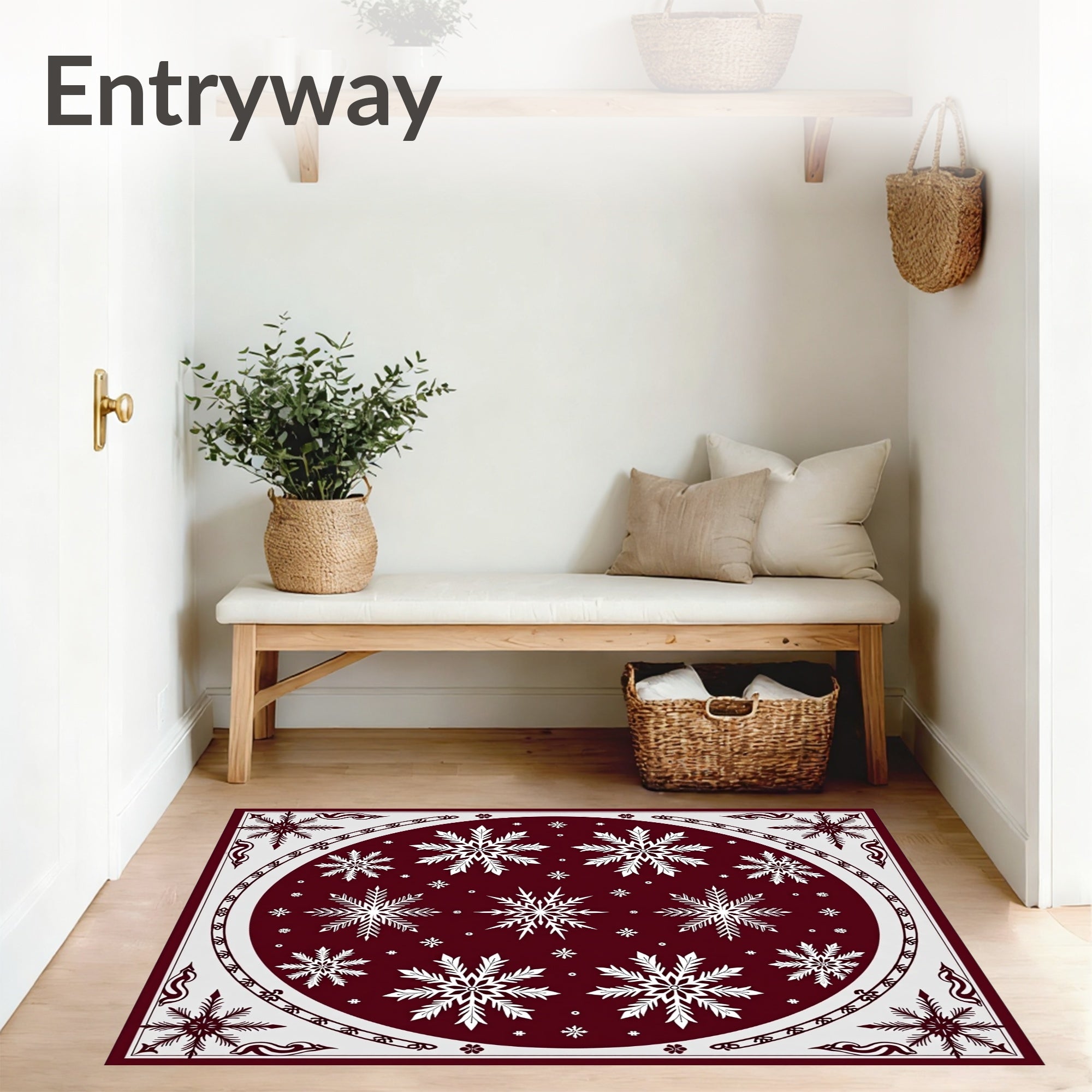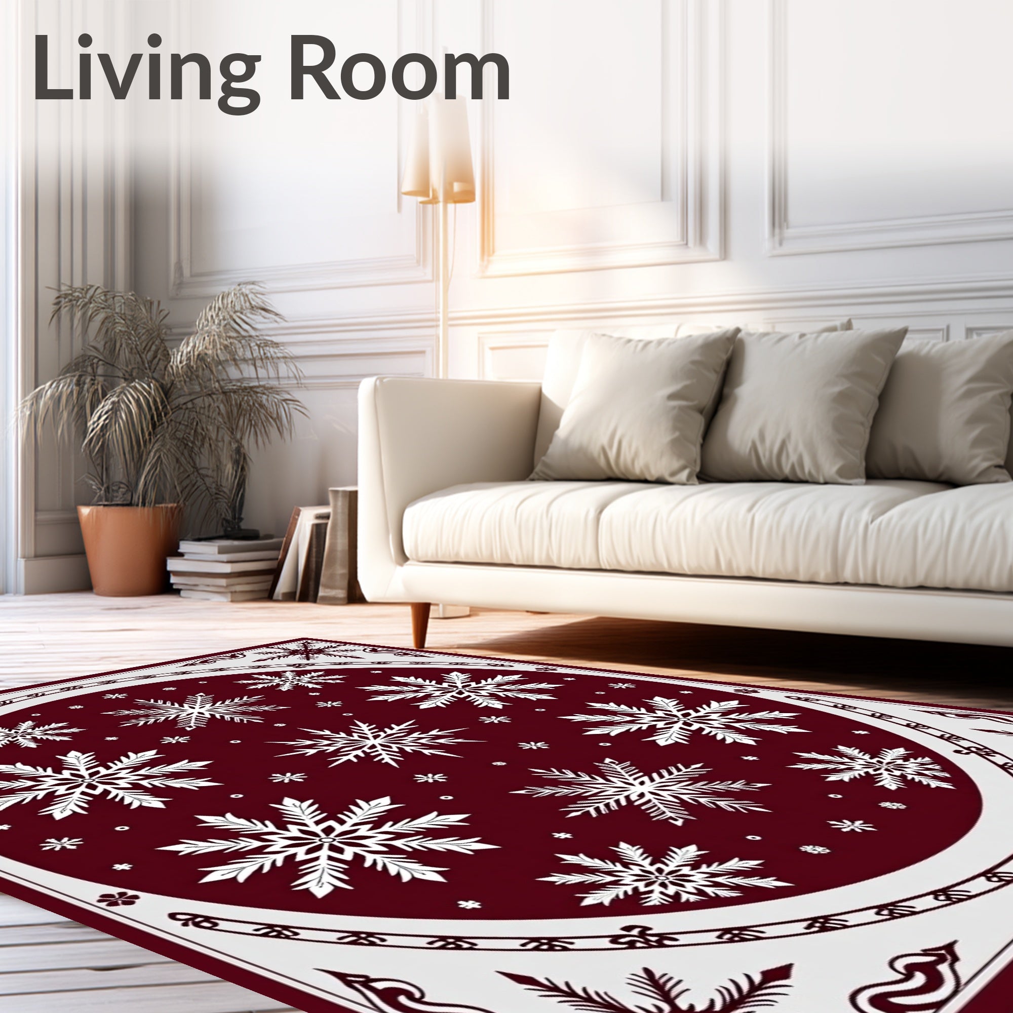 Ultra Soft Area Rug, Non Slip, Stain Resistant, Washable Area Rugs for Living Room, Bedroom, Enchanted Frosty Wonderland Accent(Burgundy) Overview: