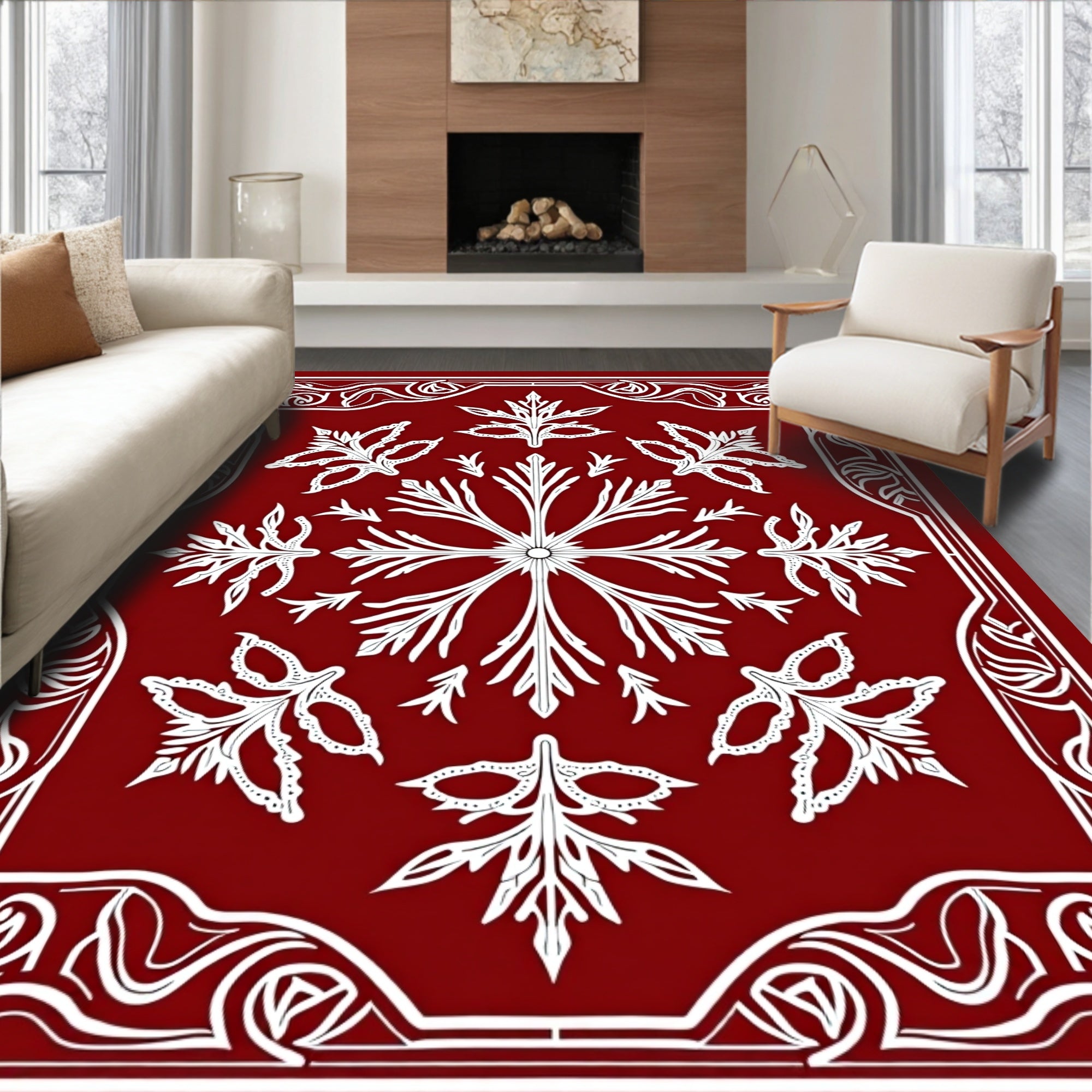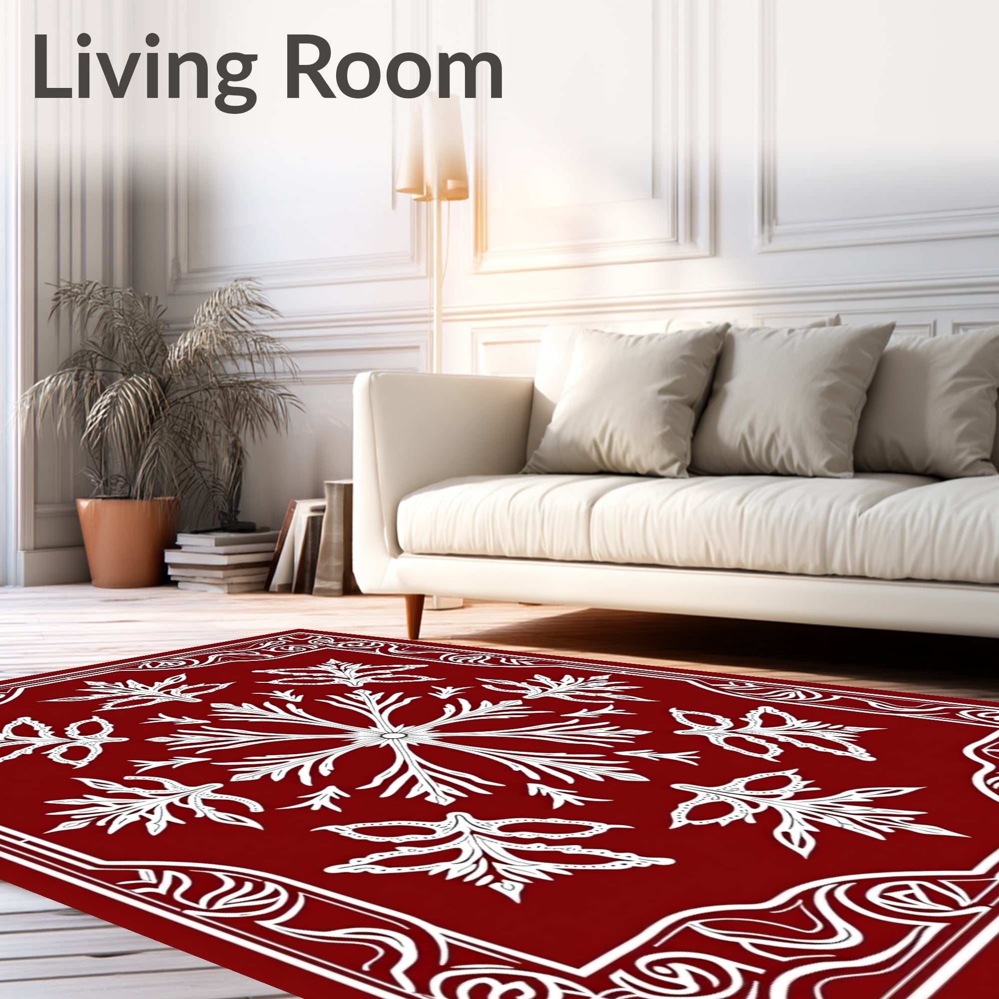 Ultra Soft Area Rug, Non Slip, Stain Resistant, Washable Area Rugs for Living Room, Bedroom, Enchanted Frosty Wonderland Decorative Accent(Red) Overview: