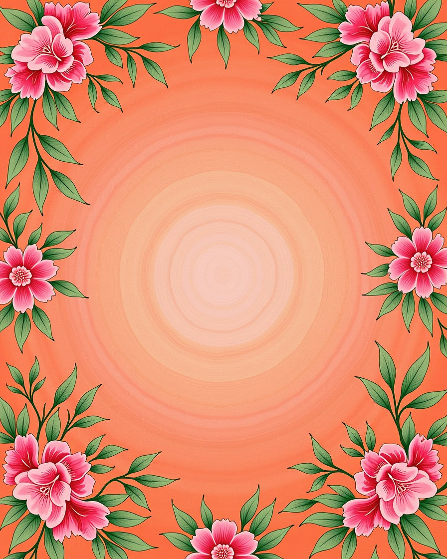 Enchanted Garden Blossom Tapestry With Decorative Vines(Orange)
