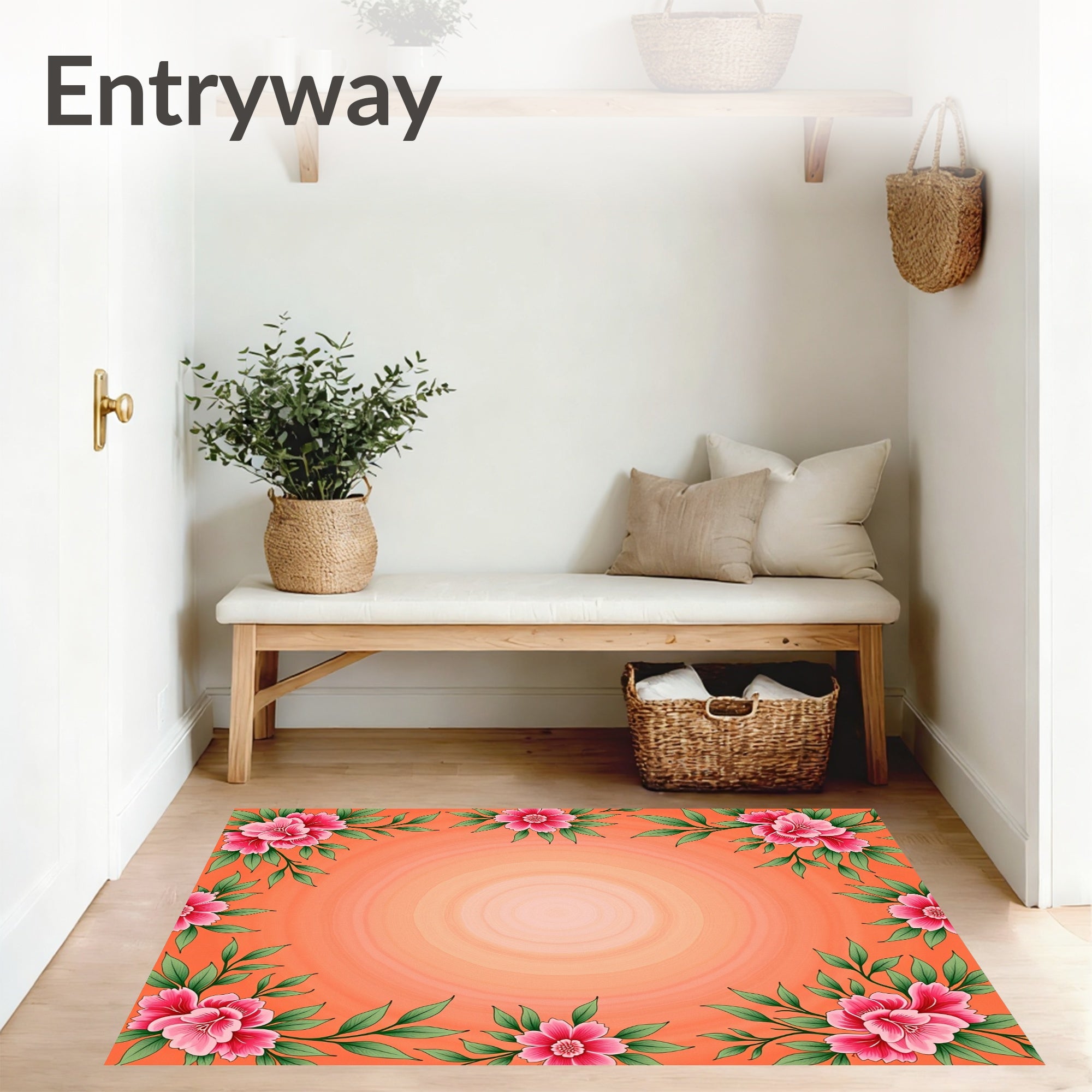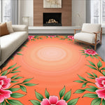 Ultra Soft Area Rug, Non Slip, Stain Resistant, Washable Area Rugs for Living Room, Bedroom, Enchanted Garden Blossom Tapestry With Decorative Vines(Orange) Overview: