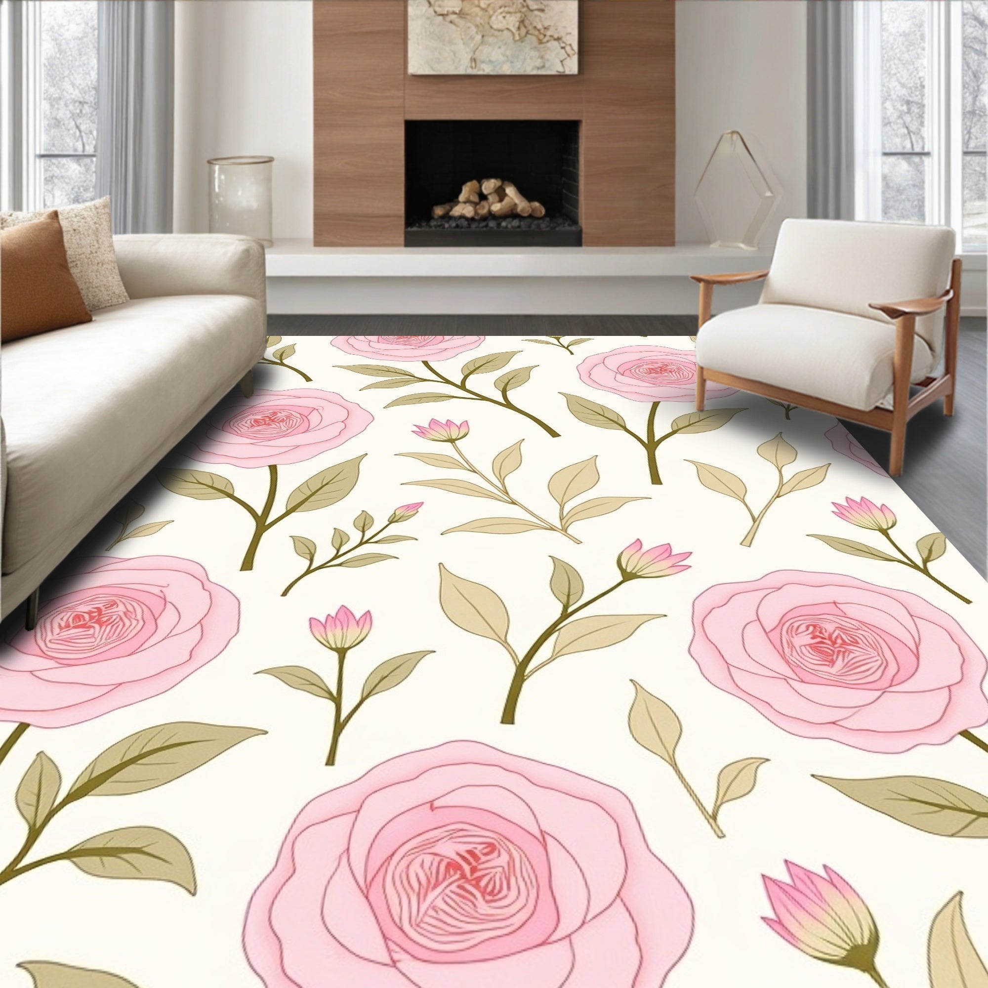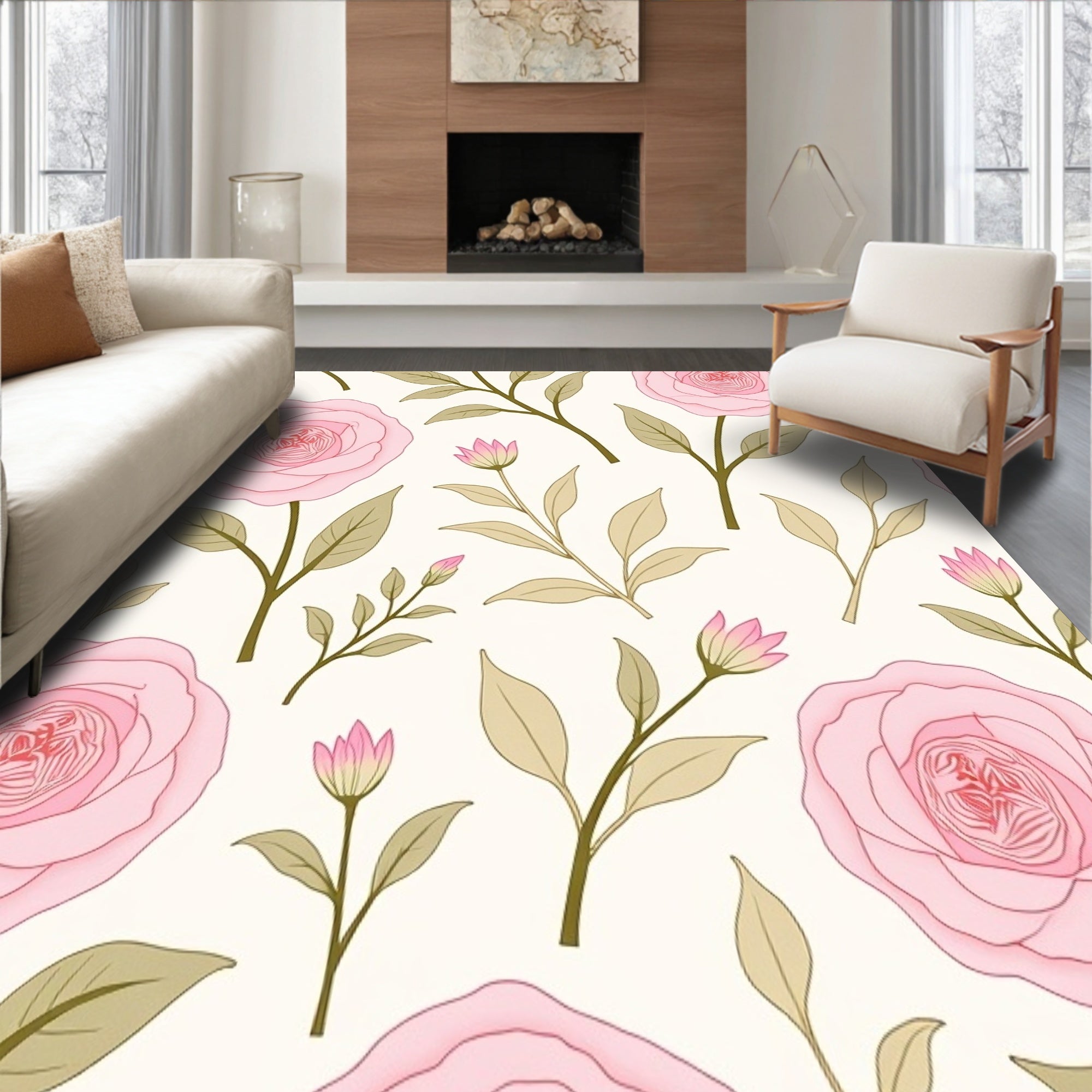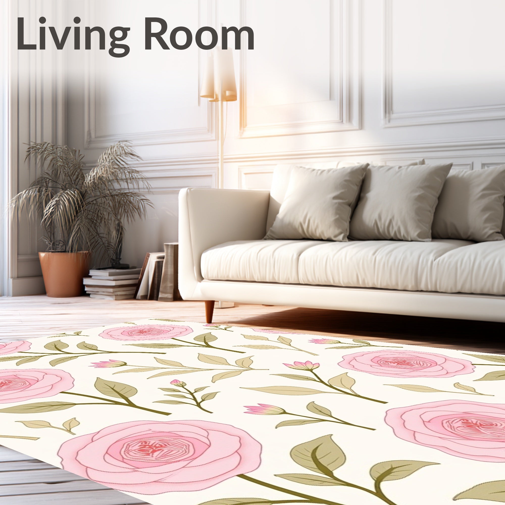 Ultra Soft Area Rug, Non Slip, Stain Resistant, Washable Area Rugs for Living Room, Bedroom, Enchanted Garden Elegant Decorative(Pink) Overview: