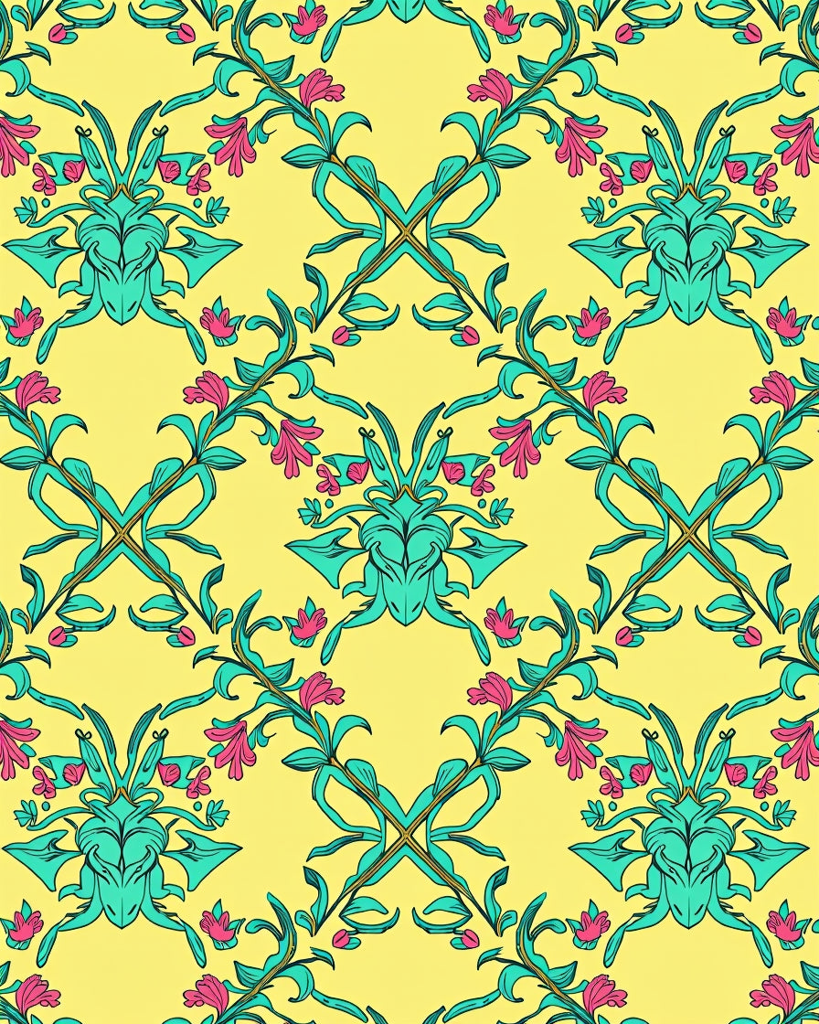 Enchanted Garden Floral Lattice Heirloom Inspired(Yellow)