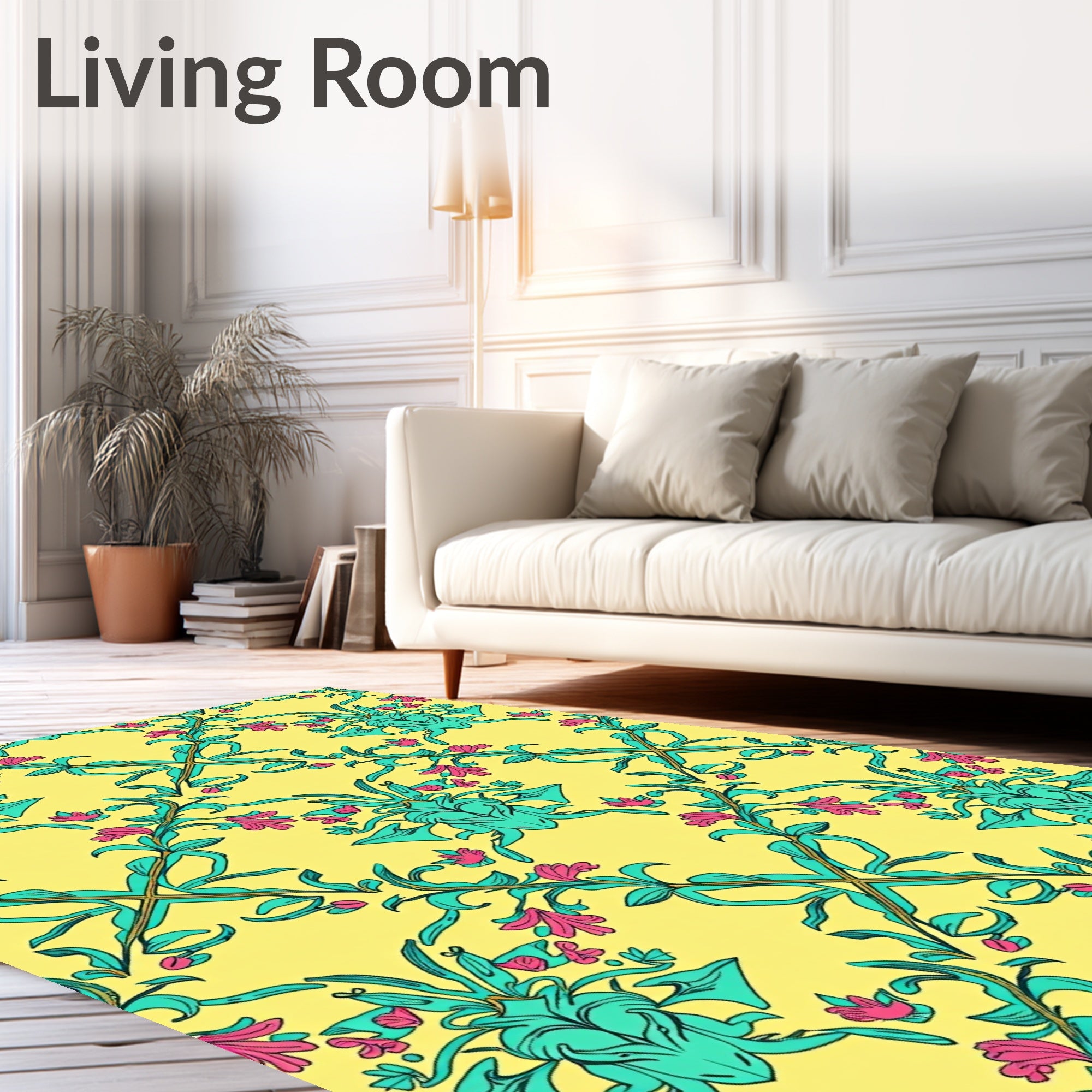 Ultra Soft Area Rug, Non Slip, Stain Resistant, Washable Area Rugs for Living Room, Bedroom, Enchanted Garden Floral Lattice Heirloom Inspired(Yellow) Overview: