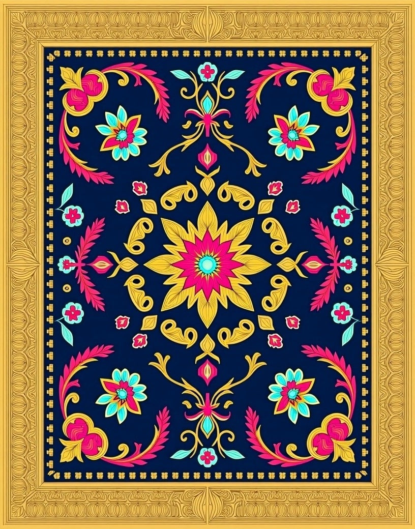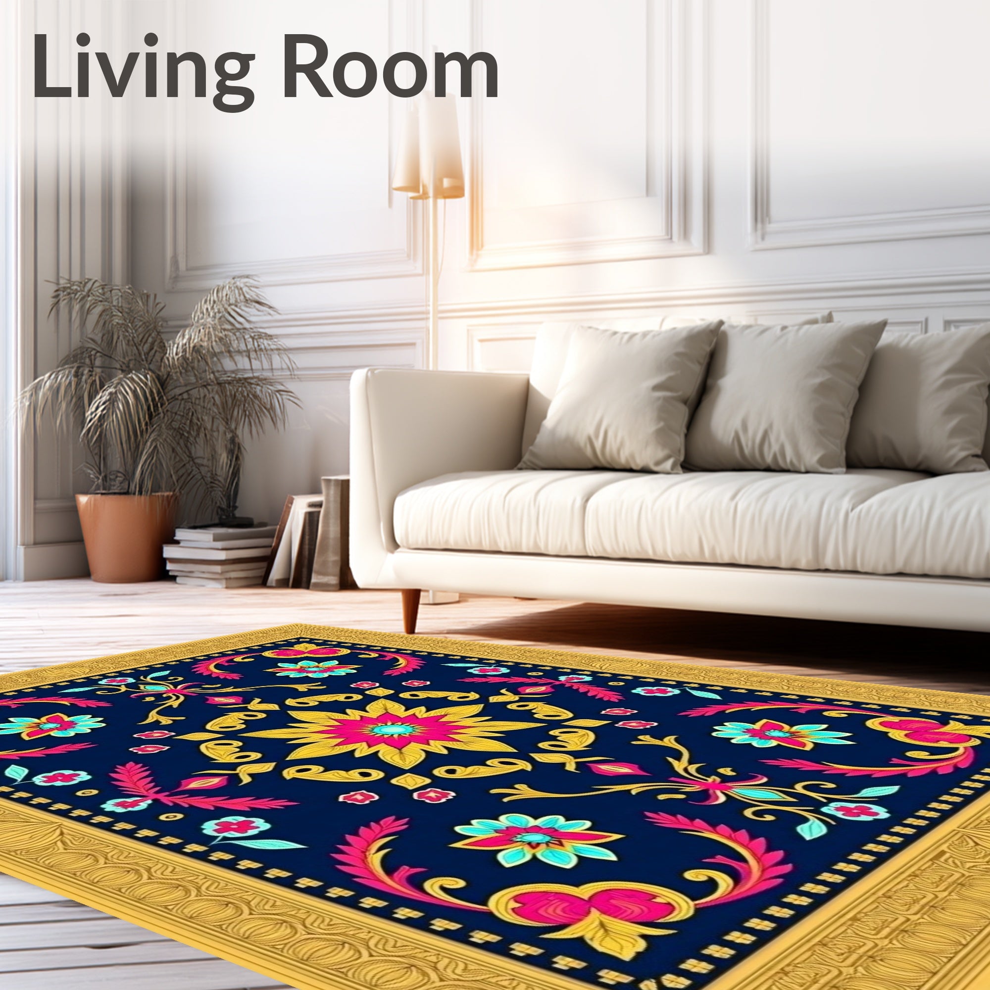 Ultra Soft Area Rug, Non Slip, Stain Resistant, Washable Area Rugs for Living Room, Bedroom, Enchanted Garden Mystical Damask Exquisite Detailed(Gold) Overview: