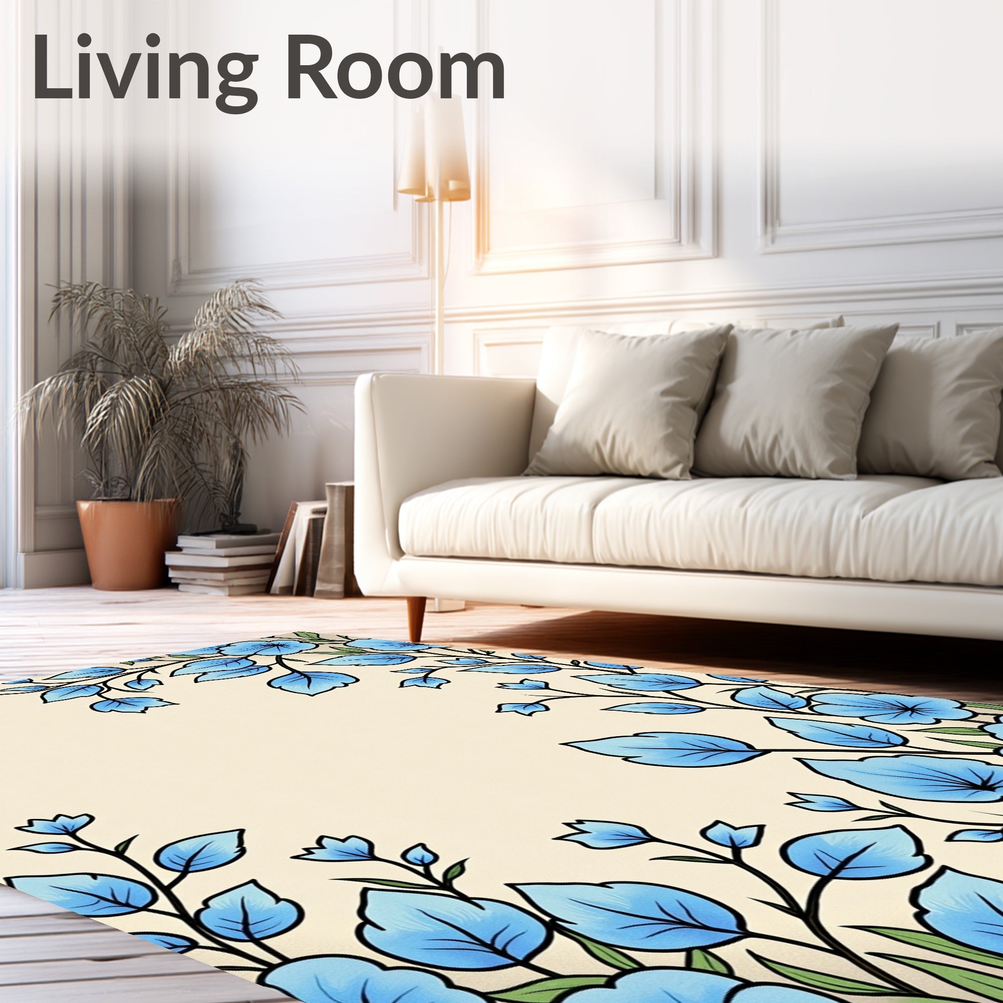 Ultra Soft Area Rug, Non Slip, Stain Resistant, Washable Area Rugs for Living Room, Bedroom, Enchanted Garden Symphony Displaying Harmonious Petal Cascade(Blue) Overview: