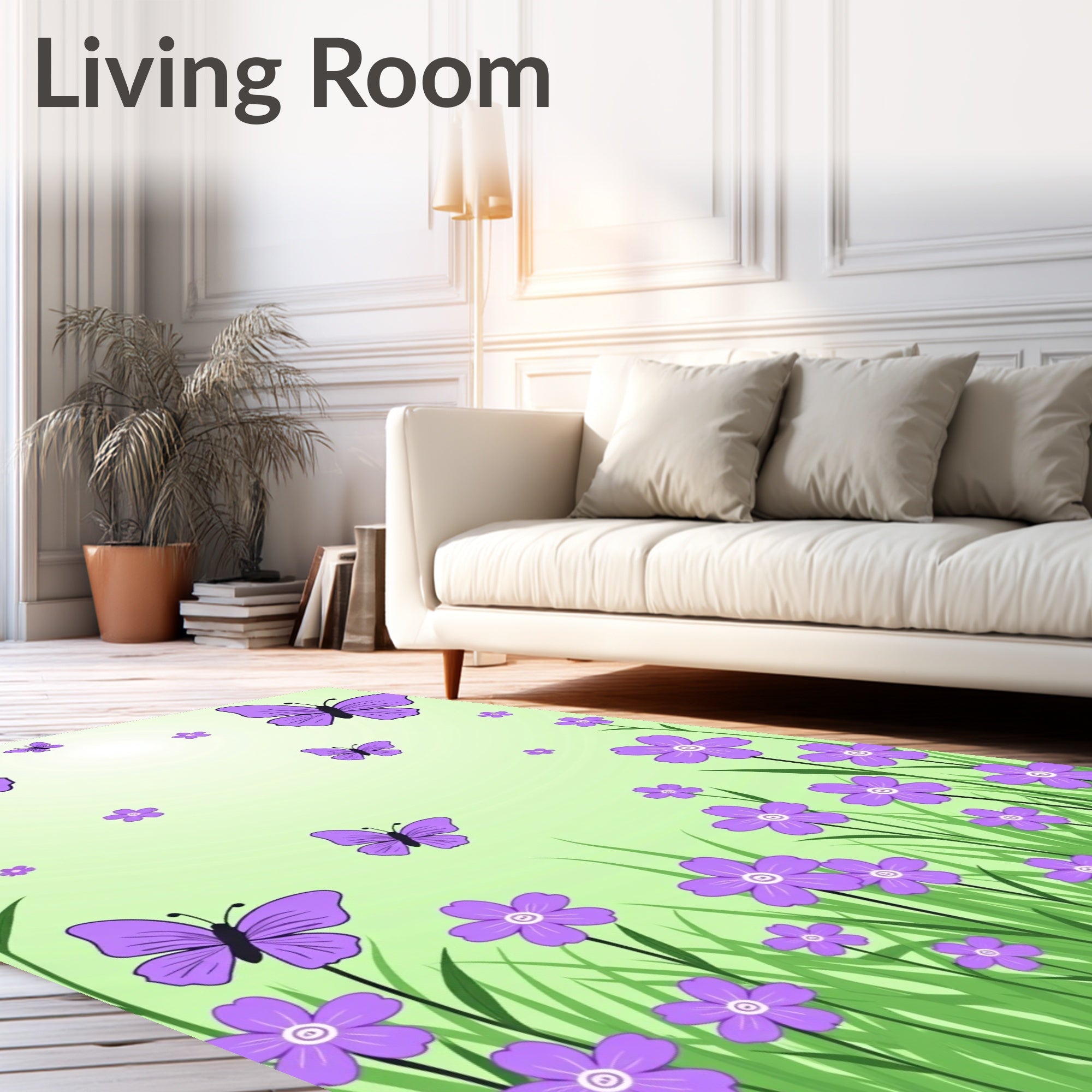 Ultra Soft Area Rug, Non Slip, Stain Resistant, Washable Area Rugs for Living Room, Bedroom, Enchanted Garden Whimsy Magical Fairy Tale Wonderland Fancy(Purple) Overview:
