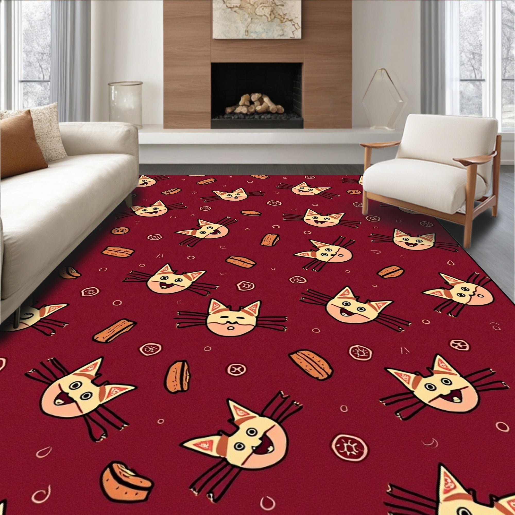 Ultra Soft Area Rug, Non Slip, Stain Resistant, Washable Area Rugs for Living Room, Bedroom, Enchanted Gourmet Cat Celebration(Red) Overview: