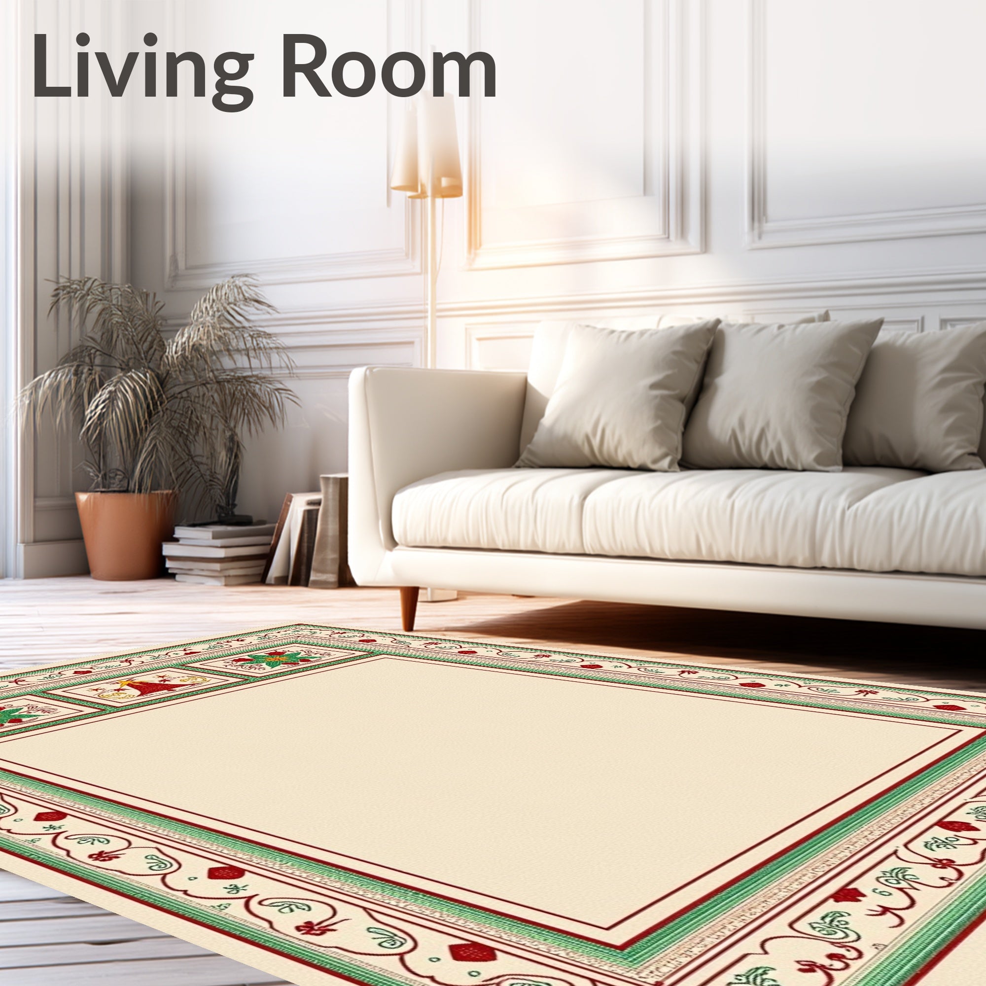 Ultra Soft Area Rug, Non Slip, Stain Resistant, Washable Area Rugs for Living Room, Bedroom, Enchanted Holiday Bell Tower Half Round Floor Covering(Beige) Overview: