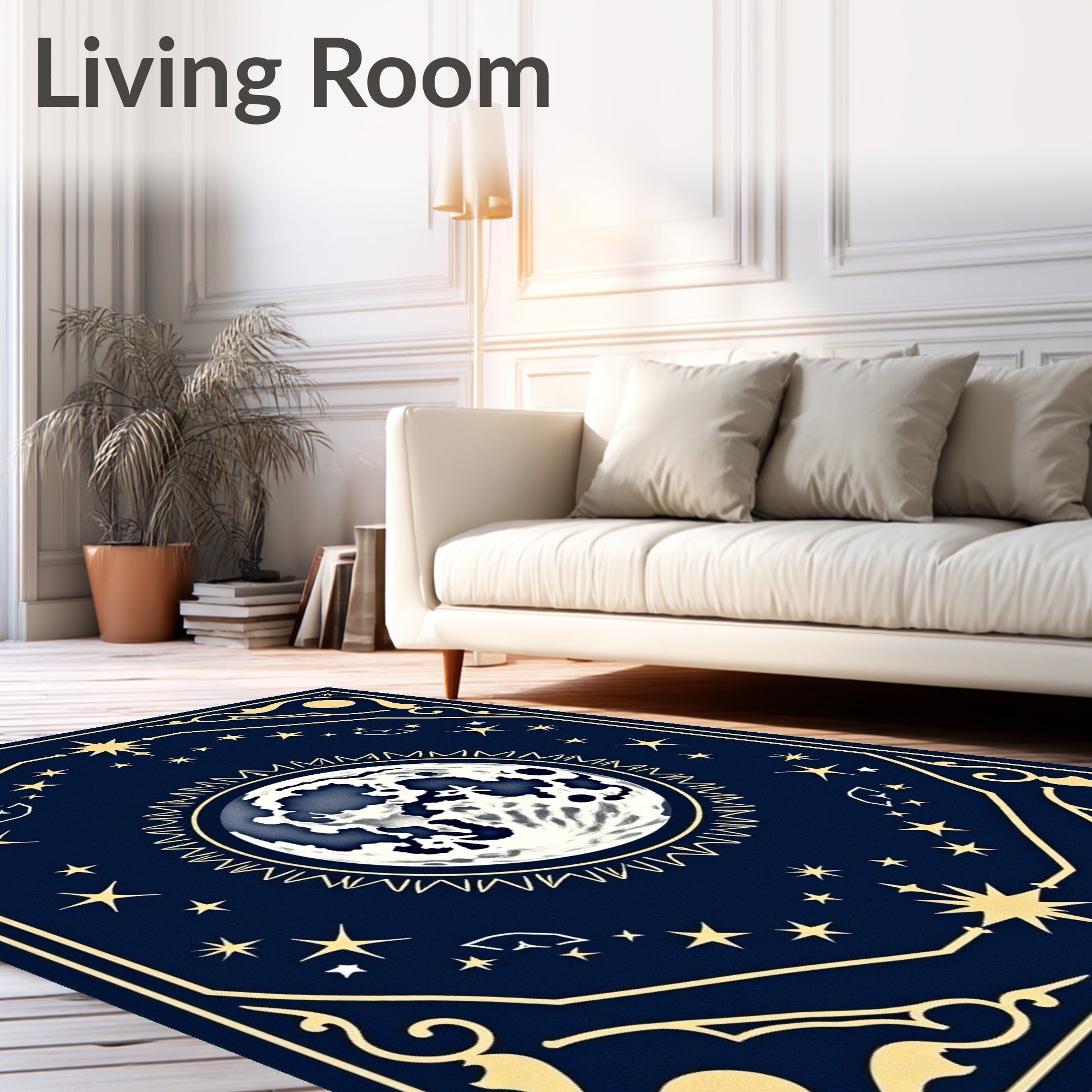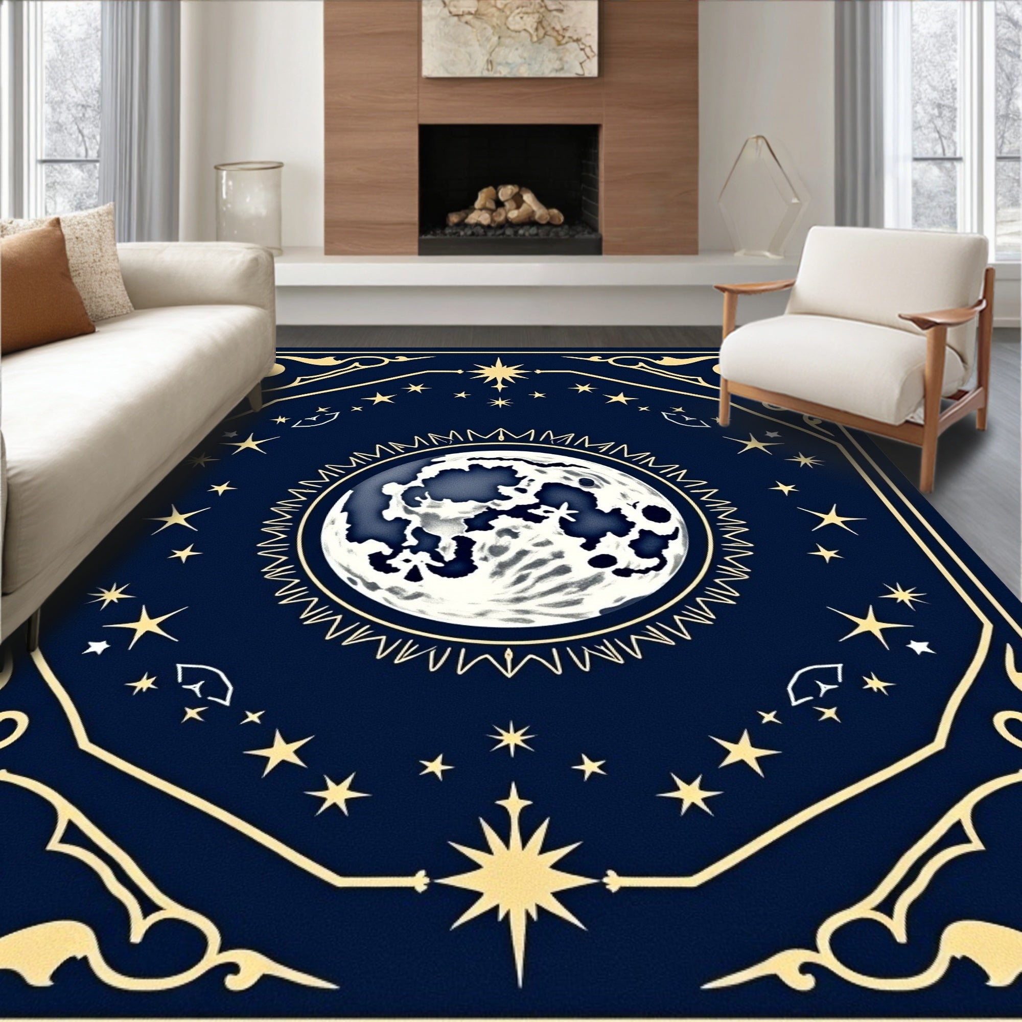 Ultra Soft Area Rug, Non Slip, Stain Resistant, Washable Area Rugs for Living Room, Bedroom, Enchanted Lunar Eclipse Constellation Magical Starry Artwork(Navy Blue) Overview: