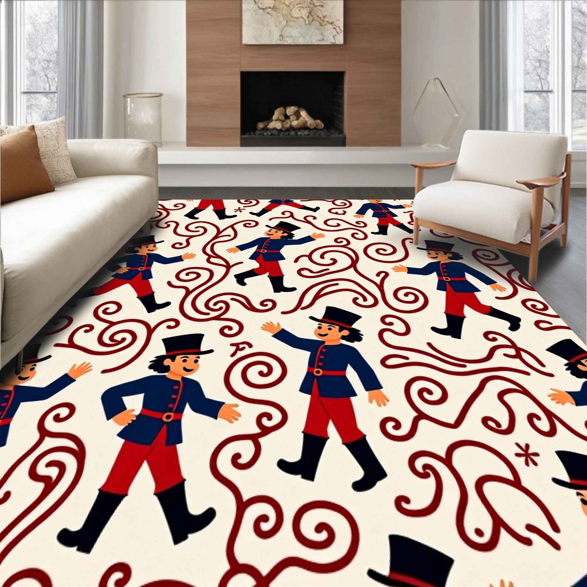 Ultra Soft Area Rug, Non Slip, Stain Resistant, Washable Area Rugs for Living Room, Bedroom, Enchanted Marching Band Swirl Patterned Protective Surface Guard(Beige) Overview: