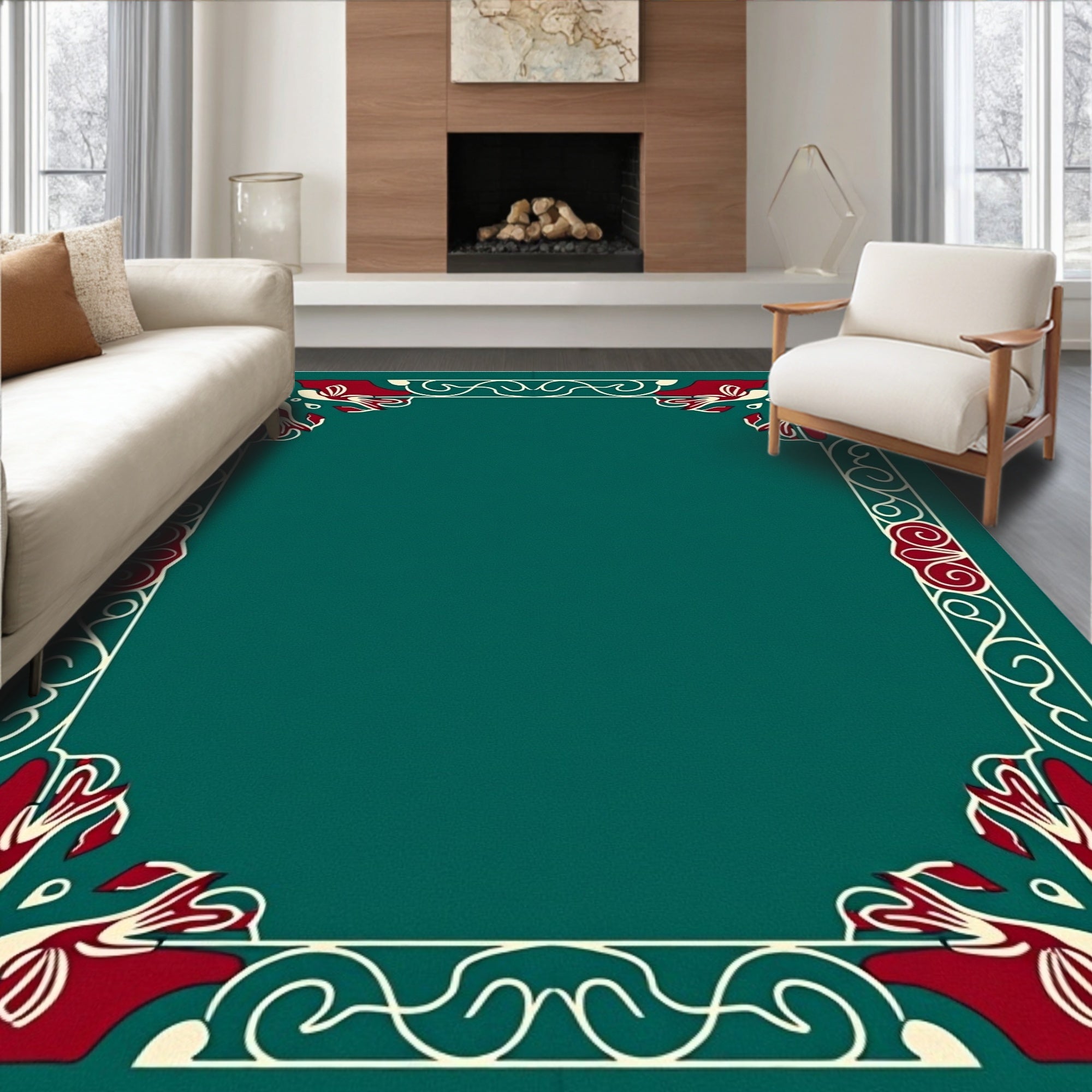Ultra Soft Area Rug, Non Slip, Stain Resistant, Washable Area Rugs for Living Room, Bedroom, Enchanted Marine Wonderland Yuletide Symphony(Green) Overview: