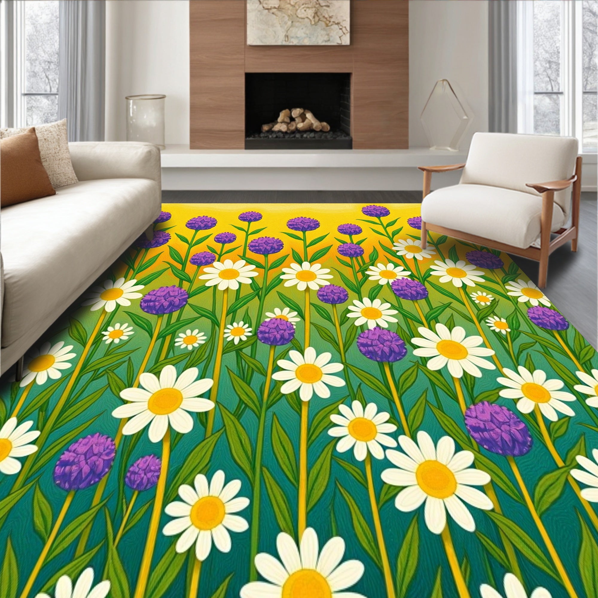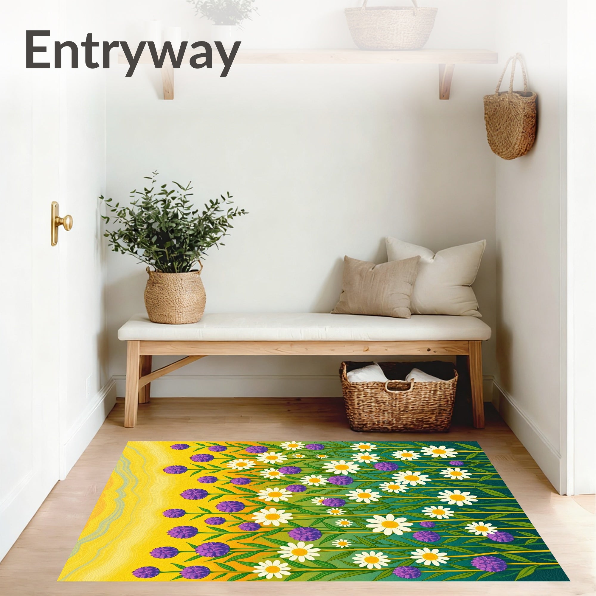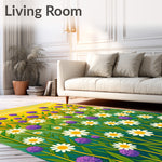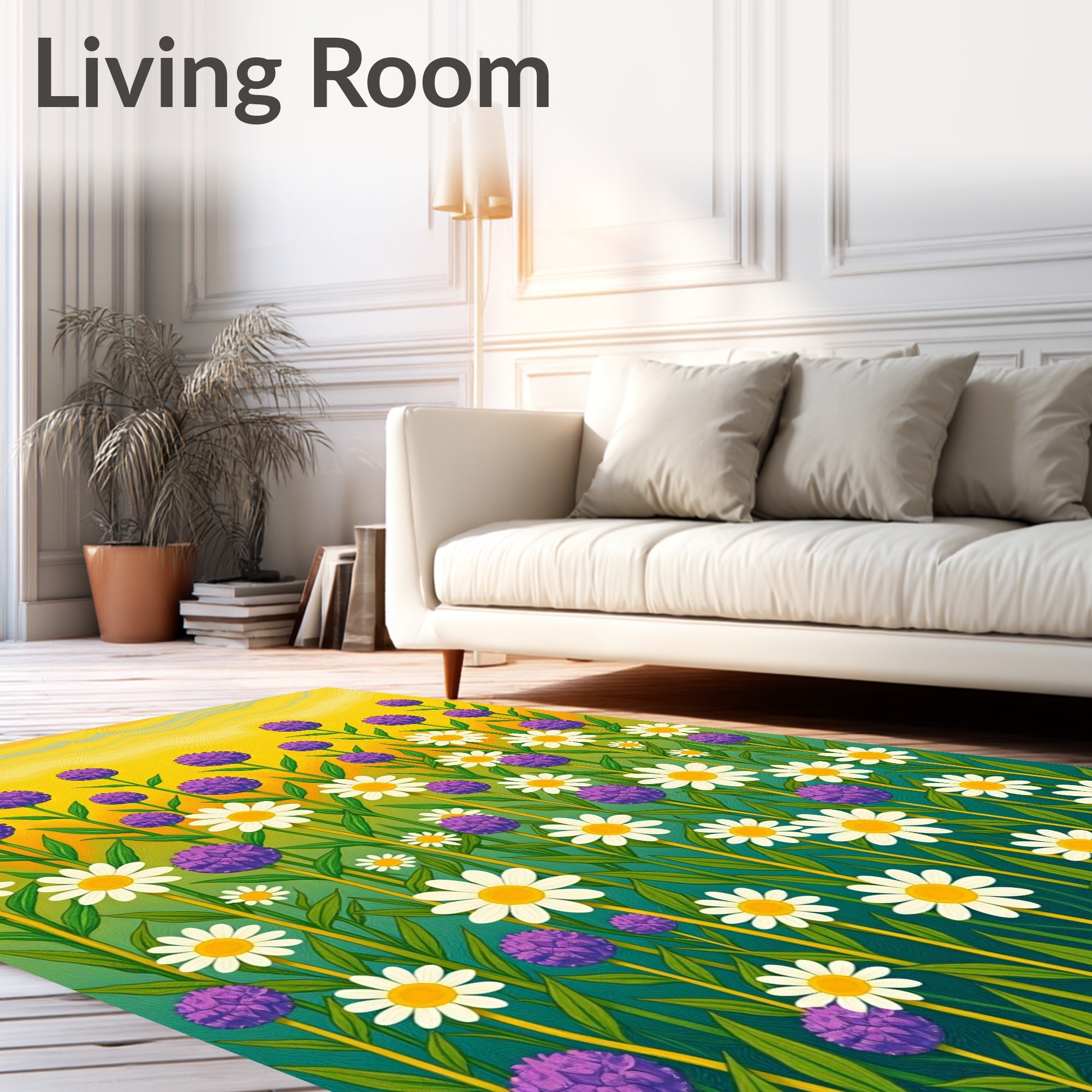 Ultra Soft Area Rug, Non Slip, Stain Resistant, Washable Area Rugs for Living Room, Bedroom, Enchanted Meadow Wildflower Decorative Arrangement(Yellow) Overview: