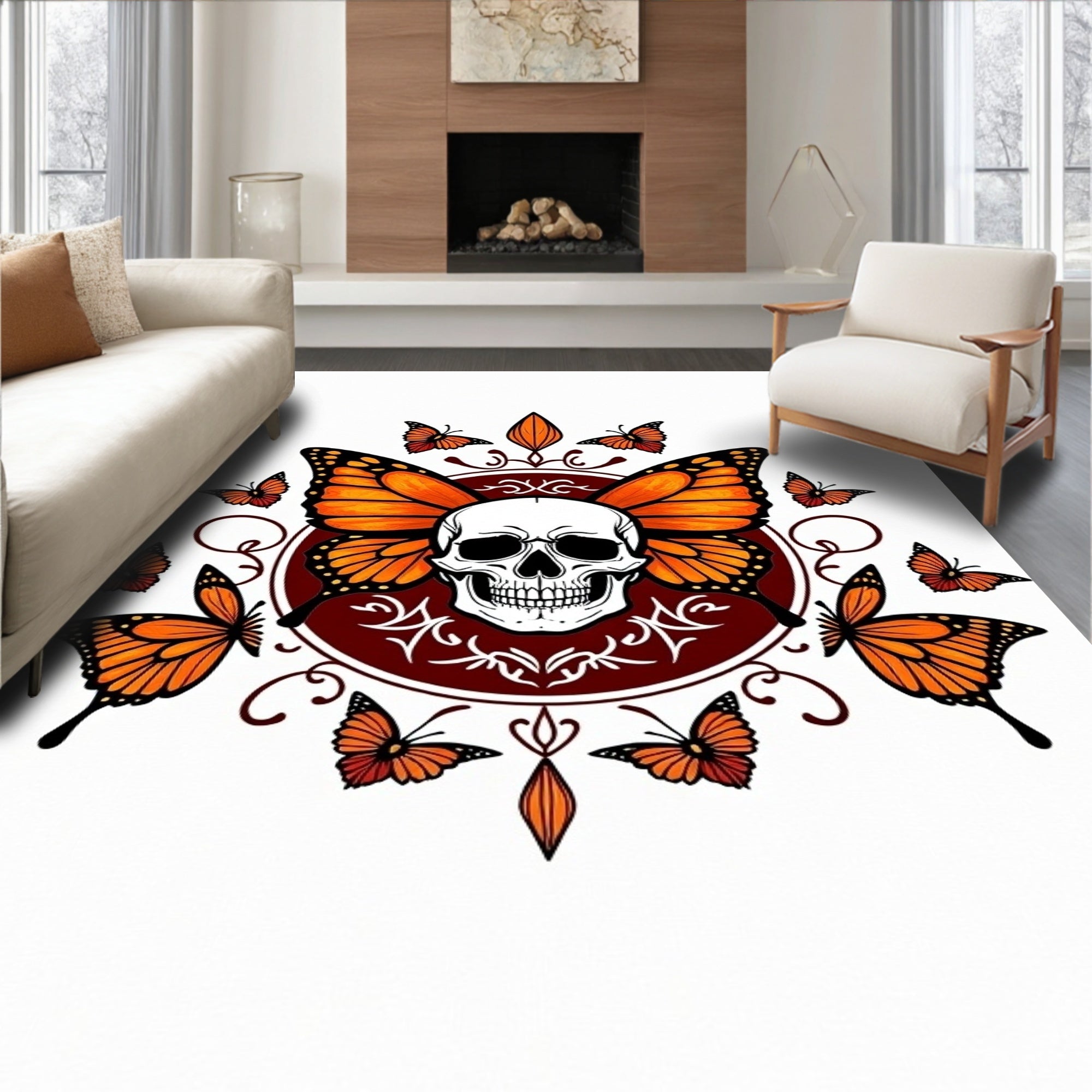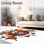 Flatwoven High Traffic Area Rug, Enchanted Monarch Cranium Fantasy, Non Slip, Stain Resistant, Washable Area Rugs for Living Room, Bedroom (Orange) Overview: