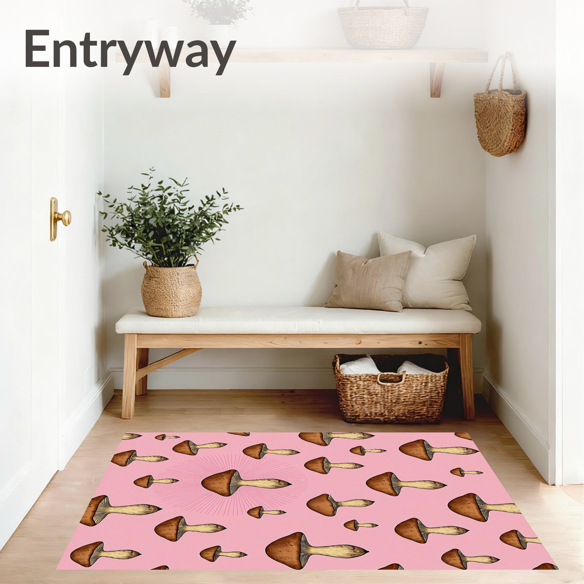 Flatwoven High Traffic Area Rug, Enchanted Moonbeam Mushroom Vintage Botanical, Non Slip, Stain Resistant, Washable Area Rugs for Living Room, Bedroom (Pink) Overview: