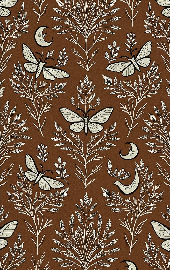 Enchanted Moonlit Meadow Moth and Mushroom Botanical(Brown)