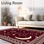 Flatwoven High Traffic Area Rug, Enchanted Mystical Celestial Starry Night Wonderscape, Non Slip, Stain Resistant, Washable Area Rugs for Living Room, Bedroom (Red) Overview: