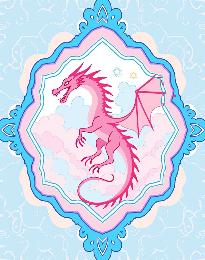 Enchanted Mythical Dragon Fantasy Whimsical Medallion Circular(Pink)