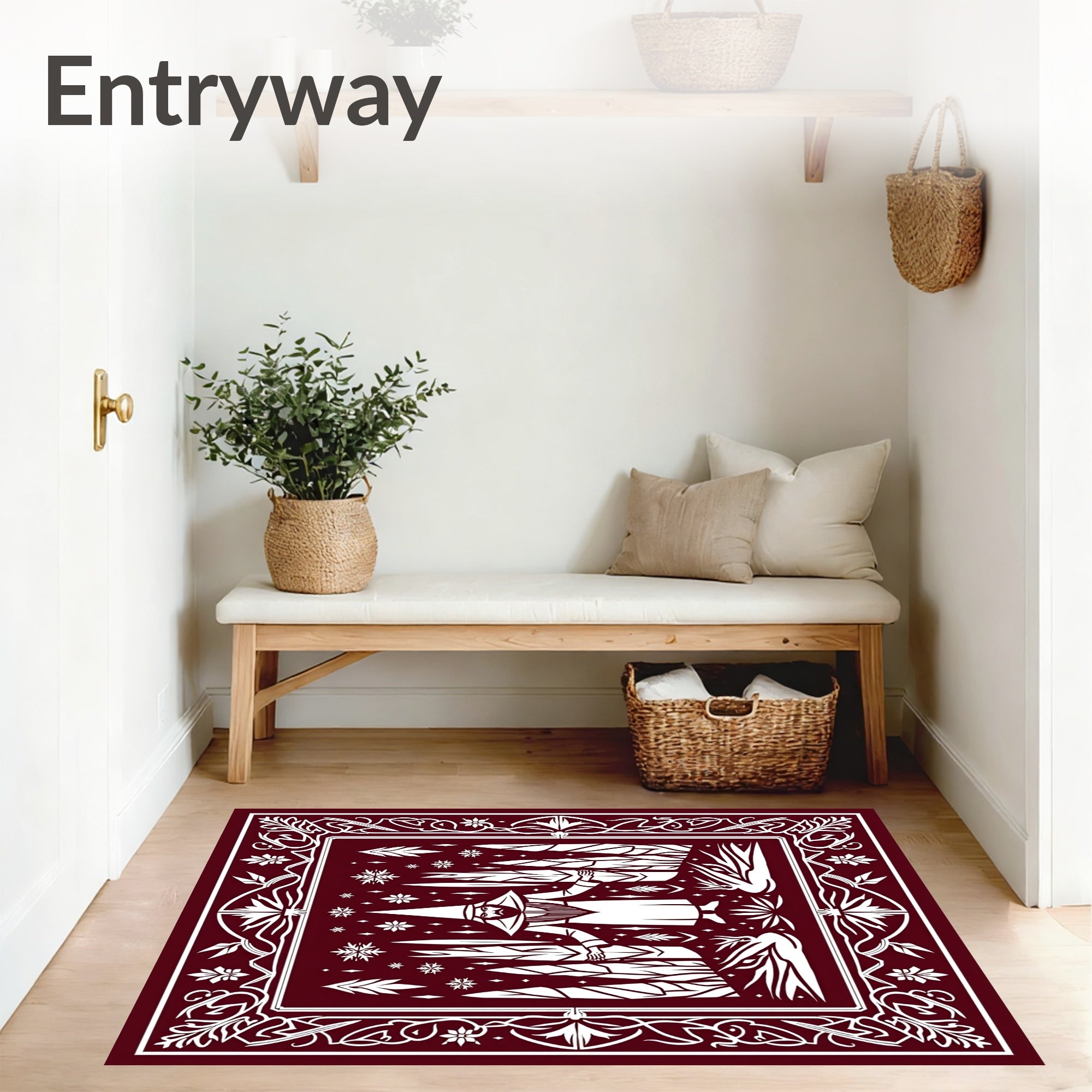 Flatwoven High Traffic Area Rug, Enchanted Mythical Floor Displaying Icy Decorations, Non Slip, Stain Resistant, Washable Area Rugs for Living Room, Bedroom (Red) Overview: